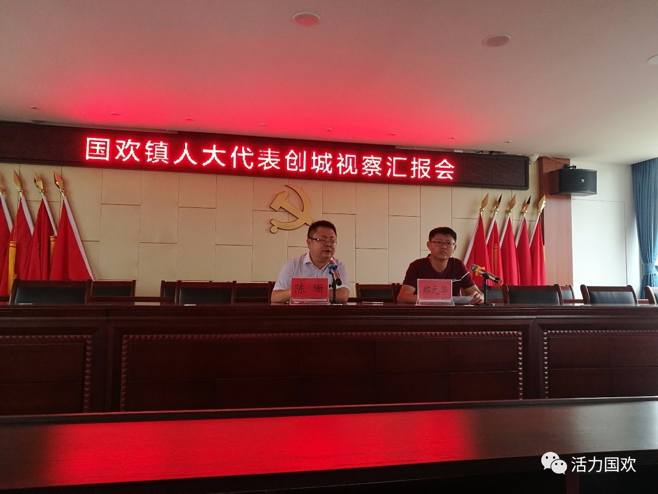 由镇宣传委员郑元华向在座代表汇报国欢镇具体创城实施措施和工作成绩,让各位代表了解我镇在创城工作上做出的努力与取得的成效。