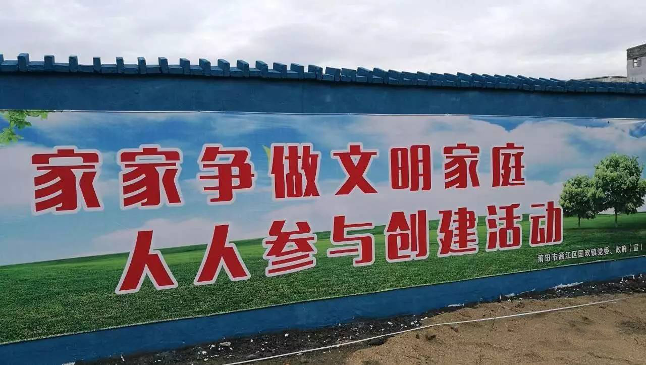 日前,位于国欢镇国欢西路、滨海大道、涵庭路两侧总长约1100米的公益广告墙全面制作完成,成为创城路上一道亮丽的文明“风景线”。