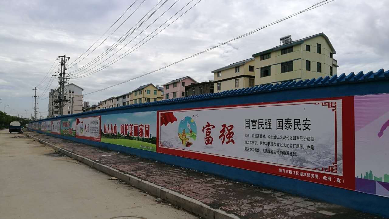 全镇创城工作推进会后,按照“12345”创城工作法“氛围再提升”的要求,镇党委、政府决定在国欢西路、滨海大道、涵庭路等城区主要路段再建1000多米公益广告墙,打造文明“风景线”,营造全社会践行核心价值观内化于心、外化于行的浓厚氛围。