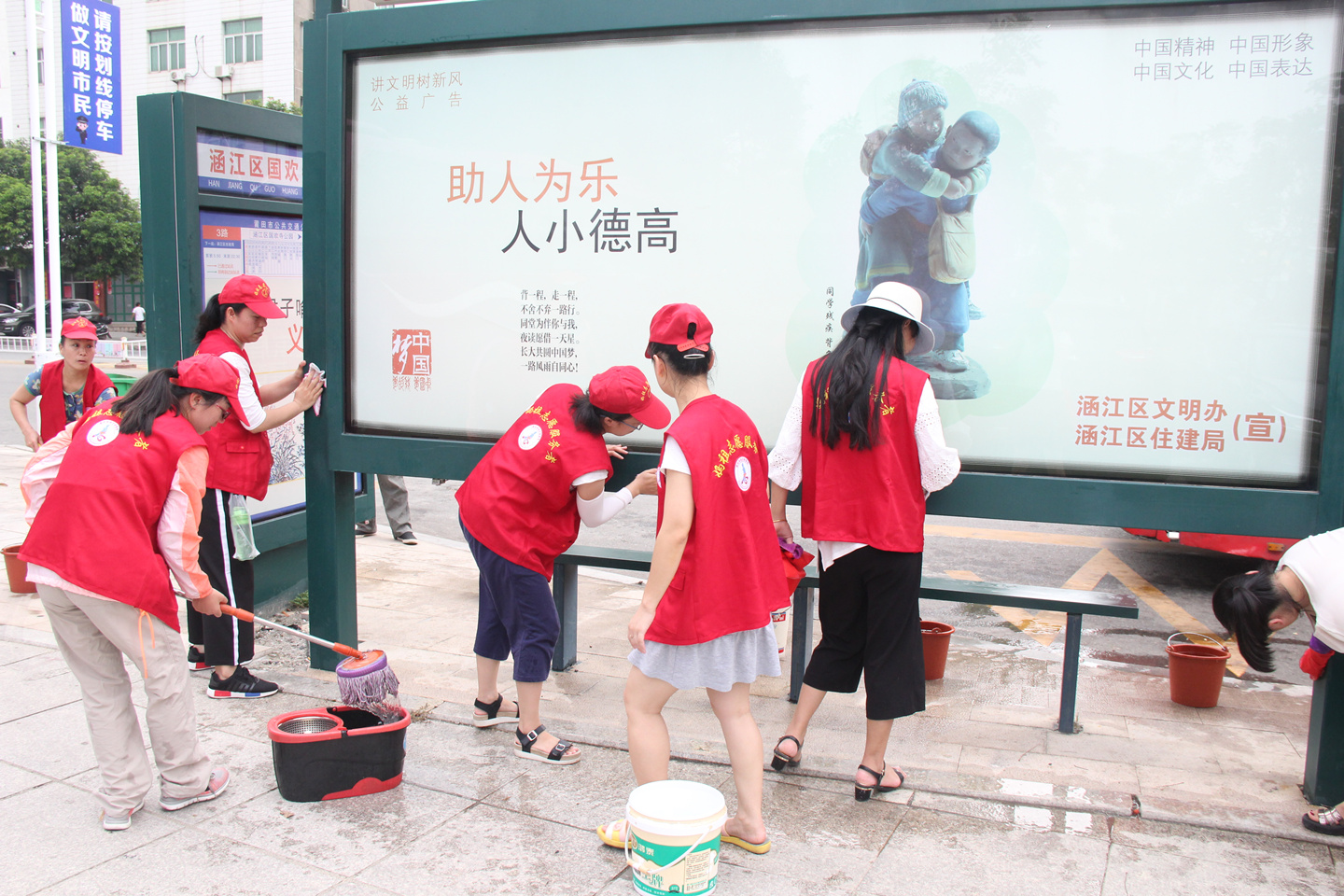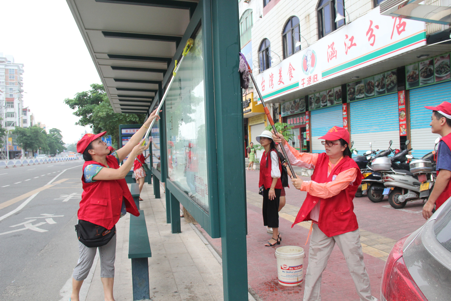 志愿者们带着水桶、抹布、扫把和垃圾袋,采用多小组多线路同时进行的方式,清洁公交停靠亭、站牌,清除公交站点野广告及周边垃圾。他们用辛勤的劳动和汗水,换来公交站台及报站牌的干净卫生、美观明亮,带动和引导市民以实际行动共同维护城市形象。