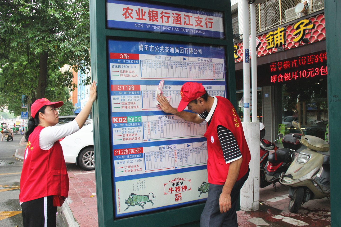 近日,涵江区志愿者协会、莆田义工协会组织36名志愿者,来到涵江区各个公交车停靠站,开展“助力创城 美化有我”清洁公交停靠站志愿服务活动。