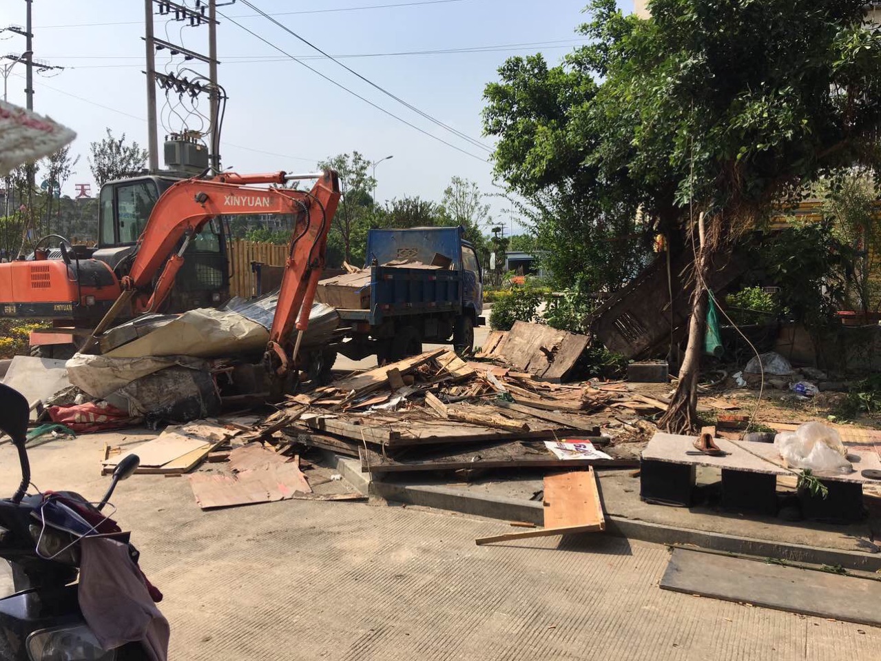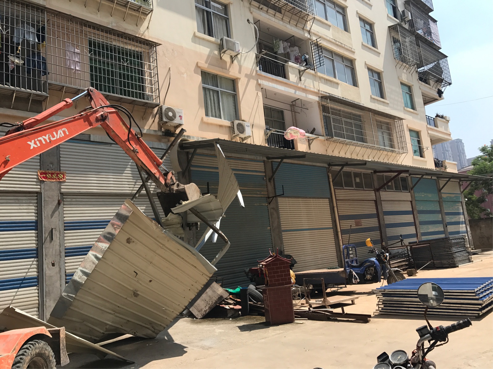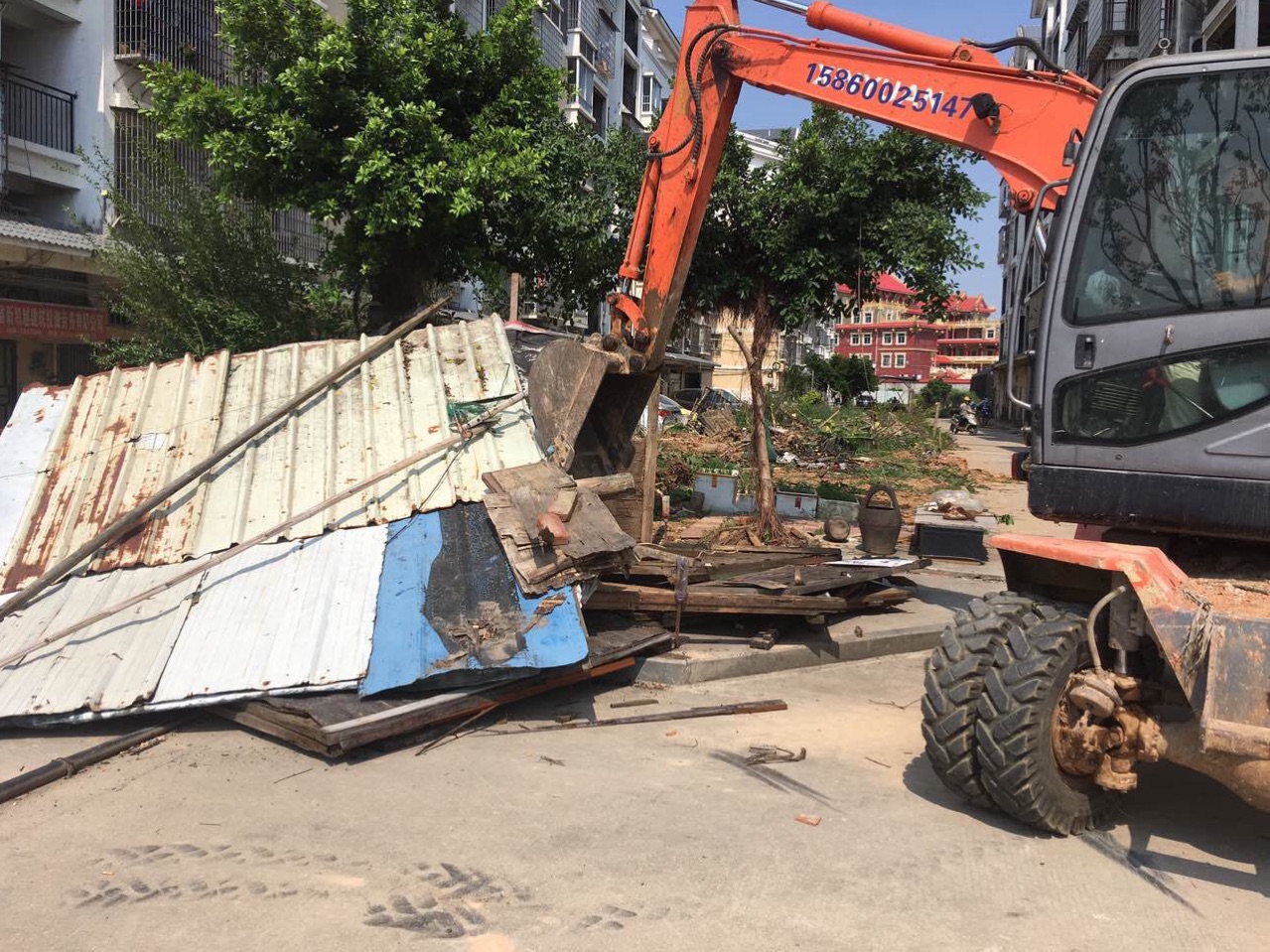 8月15日,镇政府出动大型执法,拆除小区内的各种乱搭乱建,小区的综合环境得到明显改善。