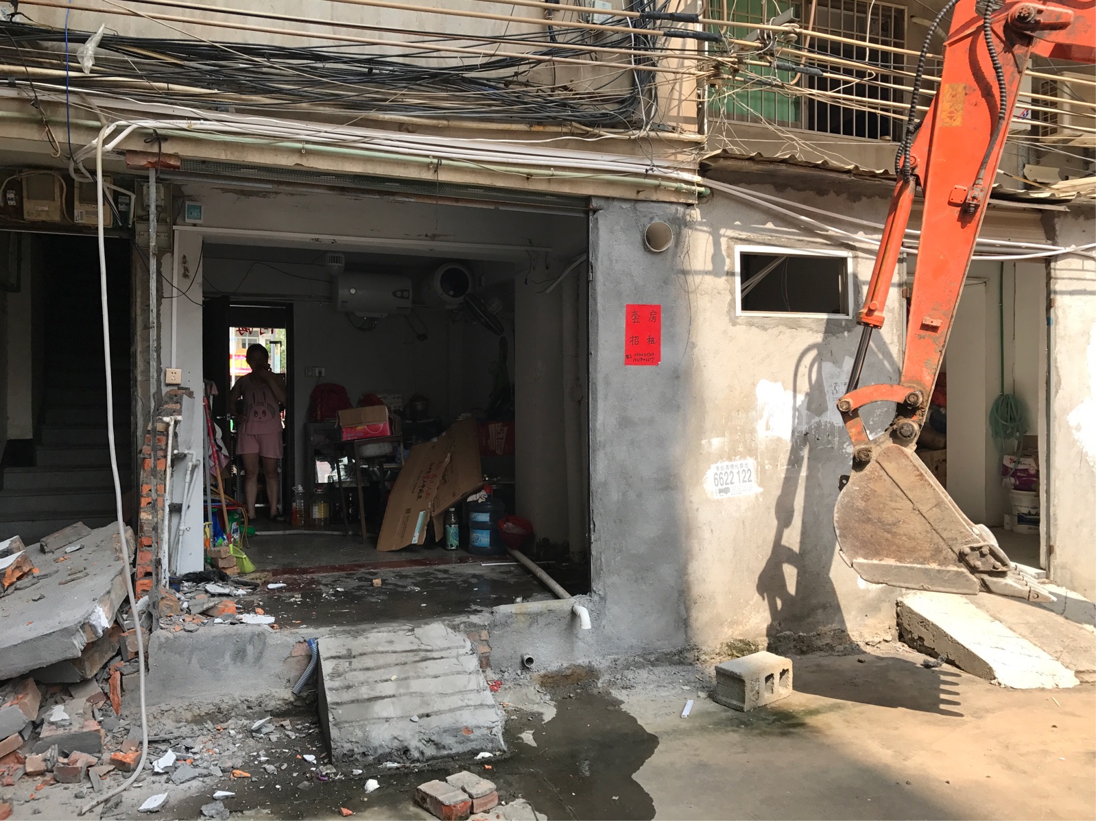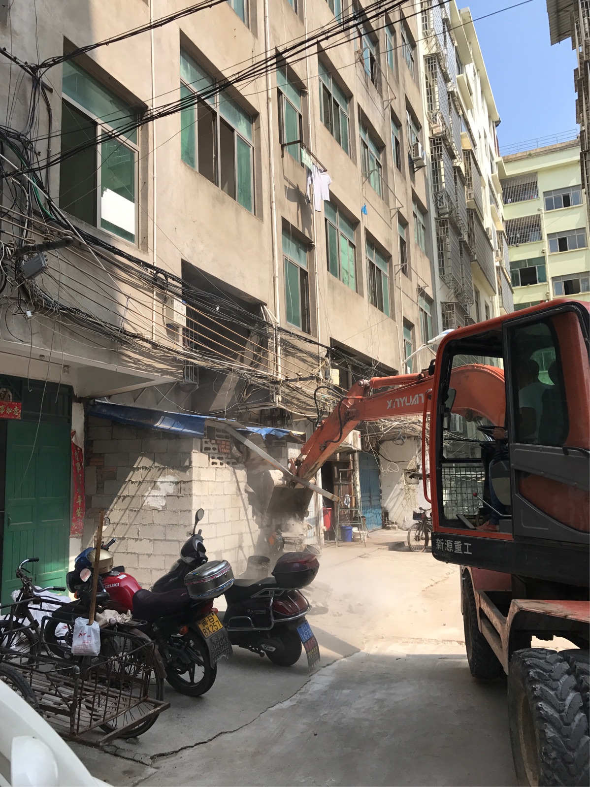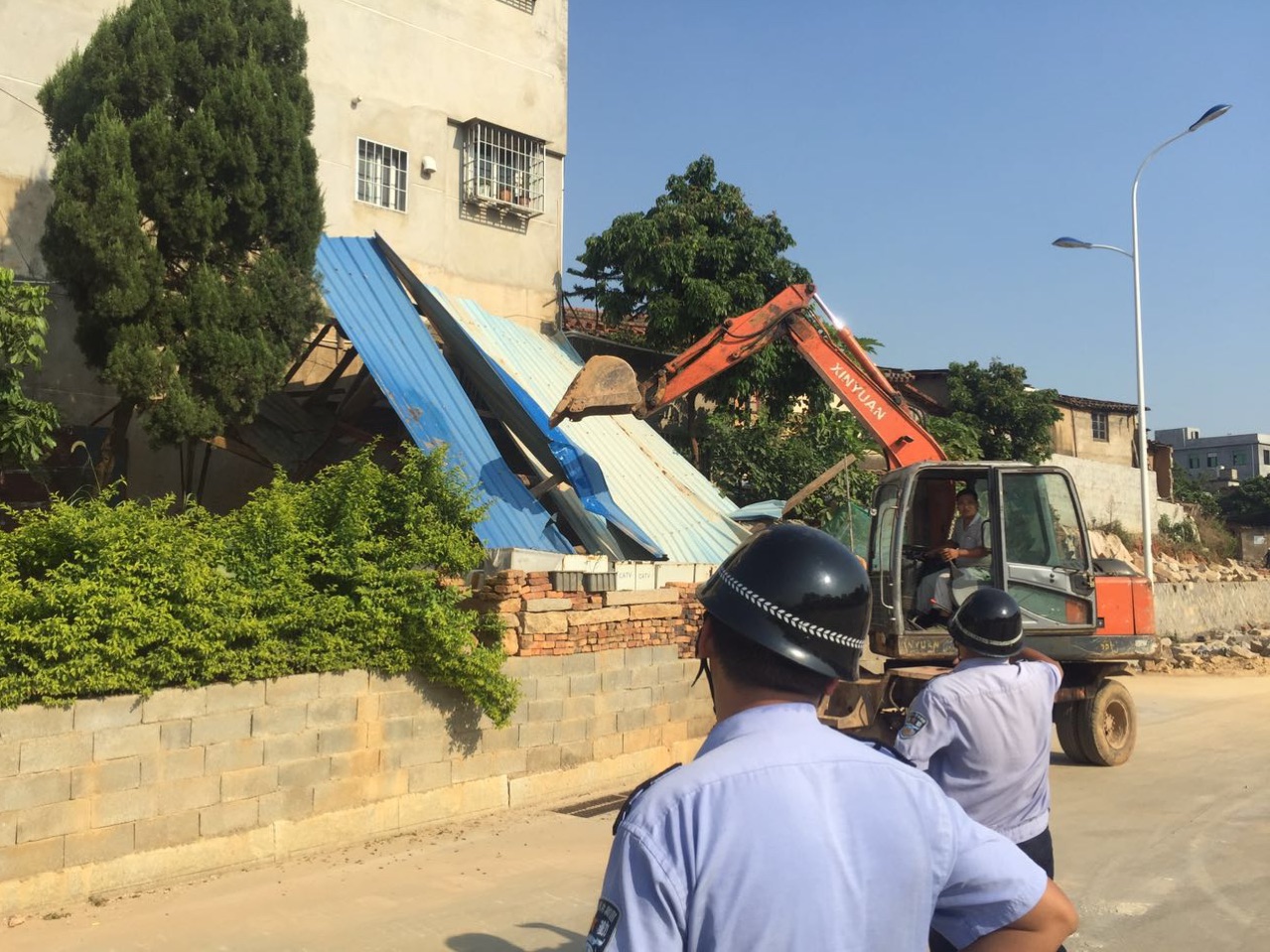 8月15日,镇政府出动大型执法,拆除小区内的各种乱搭乱建,小区的综合环境得到明显改善。