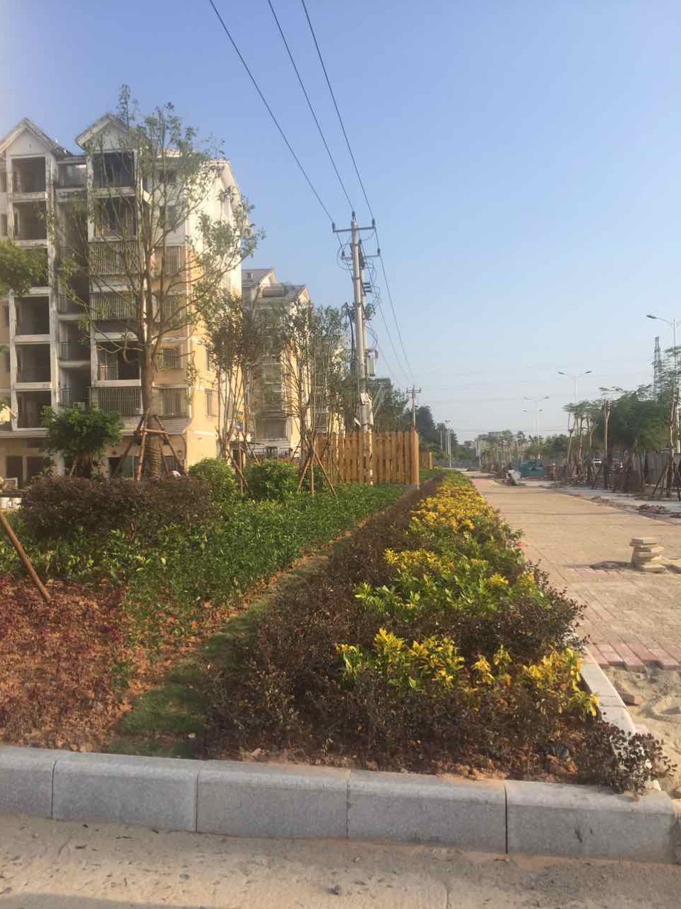 加强小区内的硬件设施配置,达到"四化"标准。即道路水泥浇灌硬化、绿化补植绿化、路灯安装亮化、环境卫生整治美化。上图为经绿化补植后的小区一角。