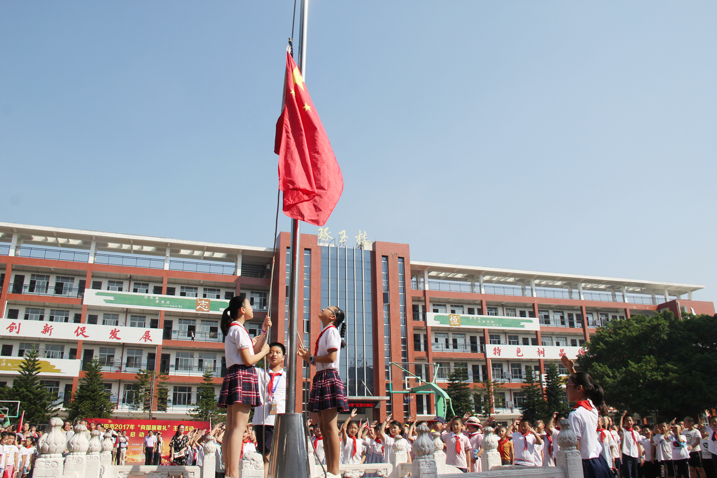 伴随着雄壮的义勇军进行曲,现场全体肃静,领导和嘉宾行注目礼、少先队员行少先队队礼,全体人员面向国旗、高唱国歌、祝福祖国。随后,校长发表国旗下的讲话,勉励同学们:“作为新世纪的青少年一代,是祖国未来的建设者,要继承和发扬崇高的爱国主义精神。珍惜时间,刻苦学习,以此来报答养育了我们的学校,报答我们敬爱的老师,回报我们的社会。”