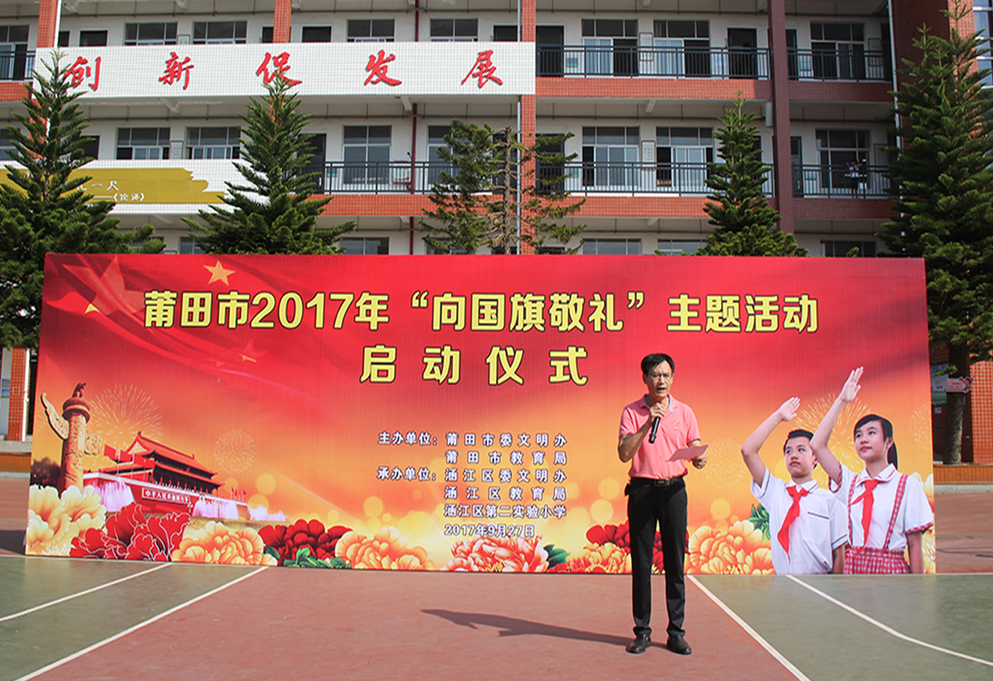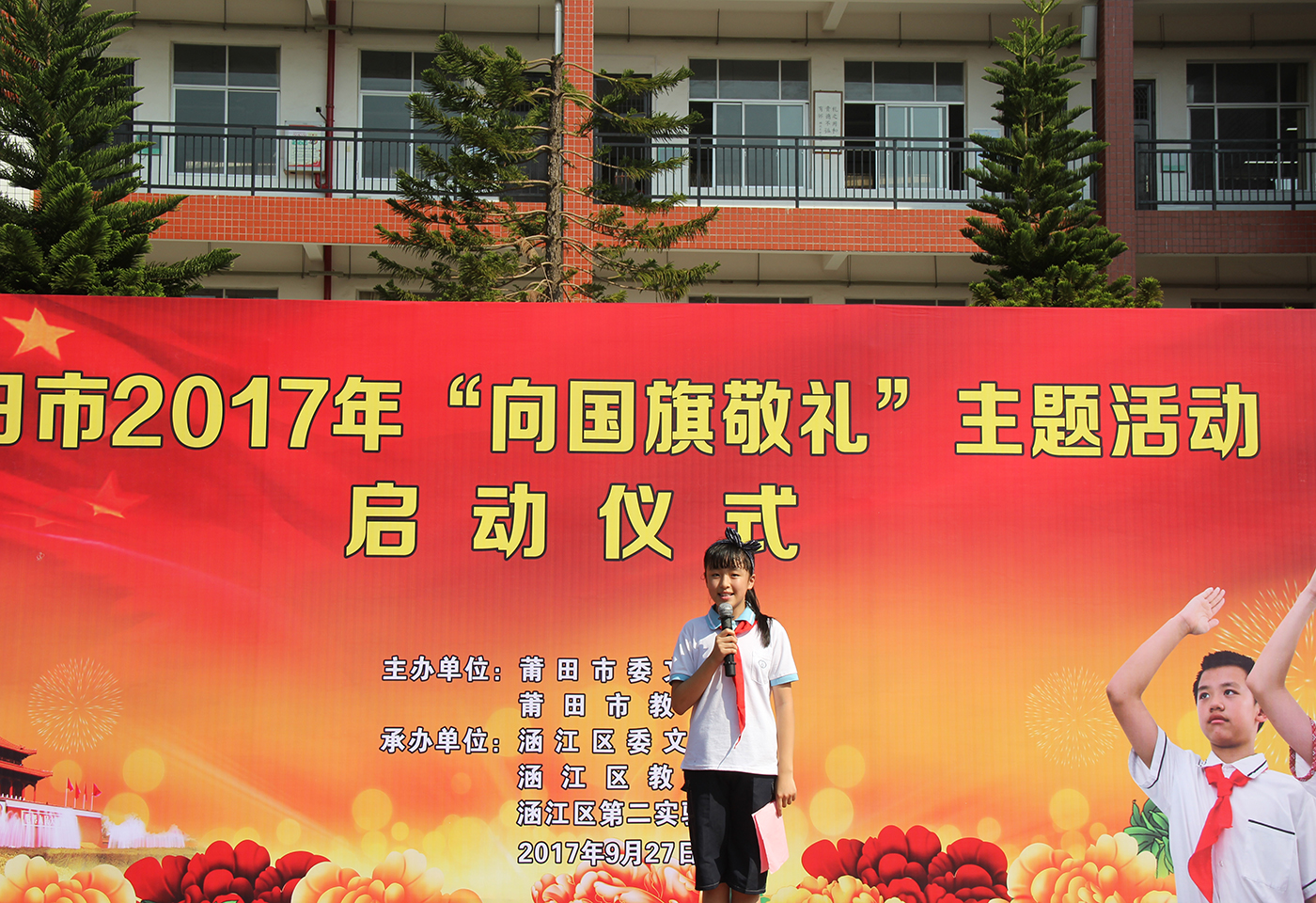 为培育和践行社会主义核心价值观,引导未成年人积极参与爱国主义教育活动,9月27日上午,由莆田市委文明办、莆田市教育局主办,涵江区委文明办、涵江区教育局、涵江区第二实验小学承办的莆田市“向国旗敬礼”主题活动启动仪式,在涵江区第二实验小学隆重举行。涵江区有关部门领导、各中小学分管领导和第二实验小学的全体师生参加了活动。