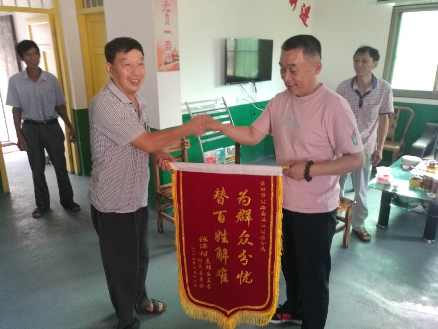经过这次事件,村民对涵江公路分局心系百姓、尽职尽责的工作精神赞誉有加。于是,张洋村的支部书记带领村民代表向涵江公路分局赠送了锦旗,表达了村民们感激之情。涵江公路分局主动作为,为民排忧办实事,他们一心为民的公仆情怀值得广大党员干部学习。