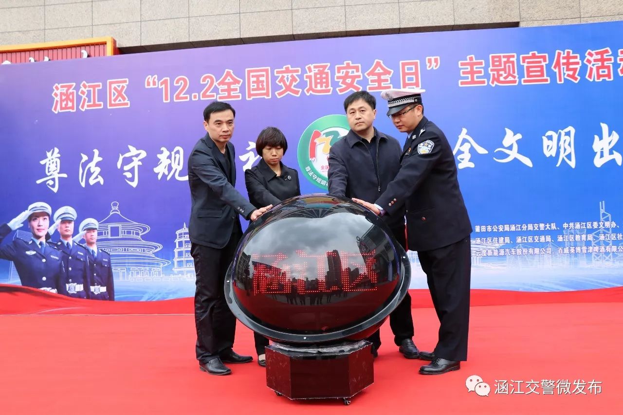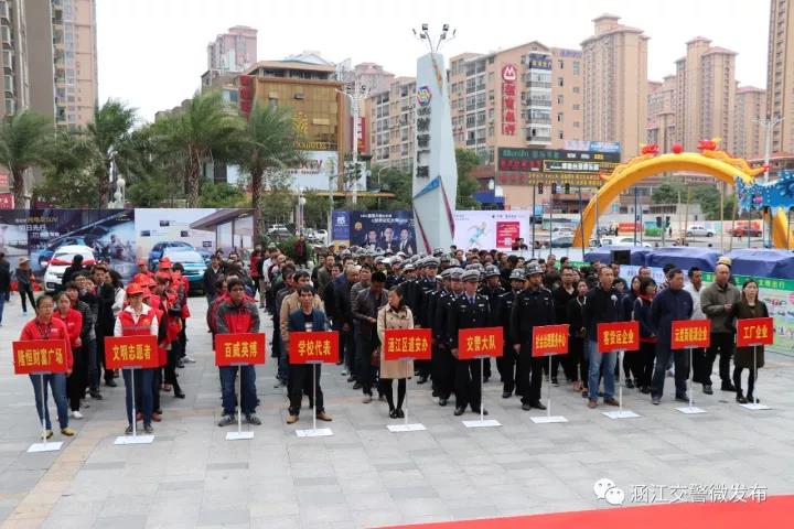 涵江区副区长、公安局局长方永武、中共涵江区委文明办主任郑荔明、区安监局局长陈勇、涵江公安分局交警大队长郭志华以及区道安办成员单位成员、交警大队全体民警、协警、社会治理服务中心工作人员、学校老师代表、百威英博企业员工、云度新能源企业员工、隆恒财富广场员工、客货运企业、工厂企业代表及到场的群众共计600余人参加活动。