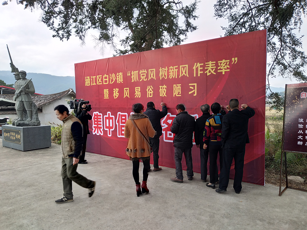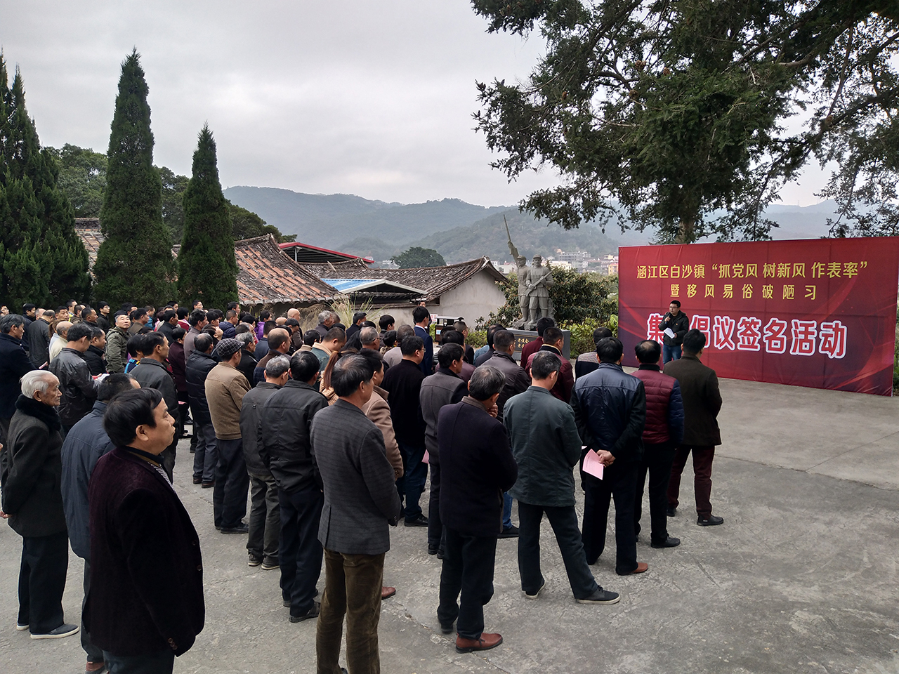 白沙镇“抓党风 树新风 作表率”暨移风易俗破陋习集体倡议签名活动