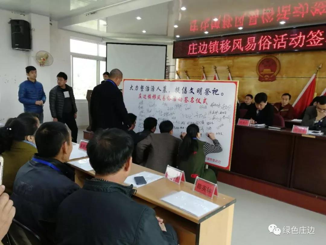 12月20日上午,庄边镇党委政府利用庄边镇第十八届人民代表大会第二次会议的间歇向参会人员发放倡议书,号召人大代表带头杜绝活人墓,进行文明祭祀,以实际行动破旧立新,移风易俗。在镇党委书记曾昭伟的带领下,全体参会人员在移风易俗签名板上签字承诺。
