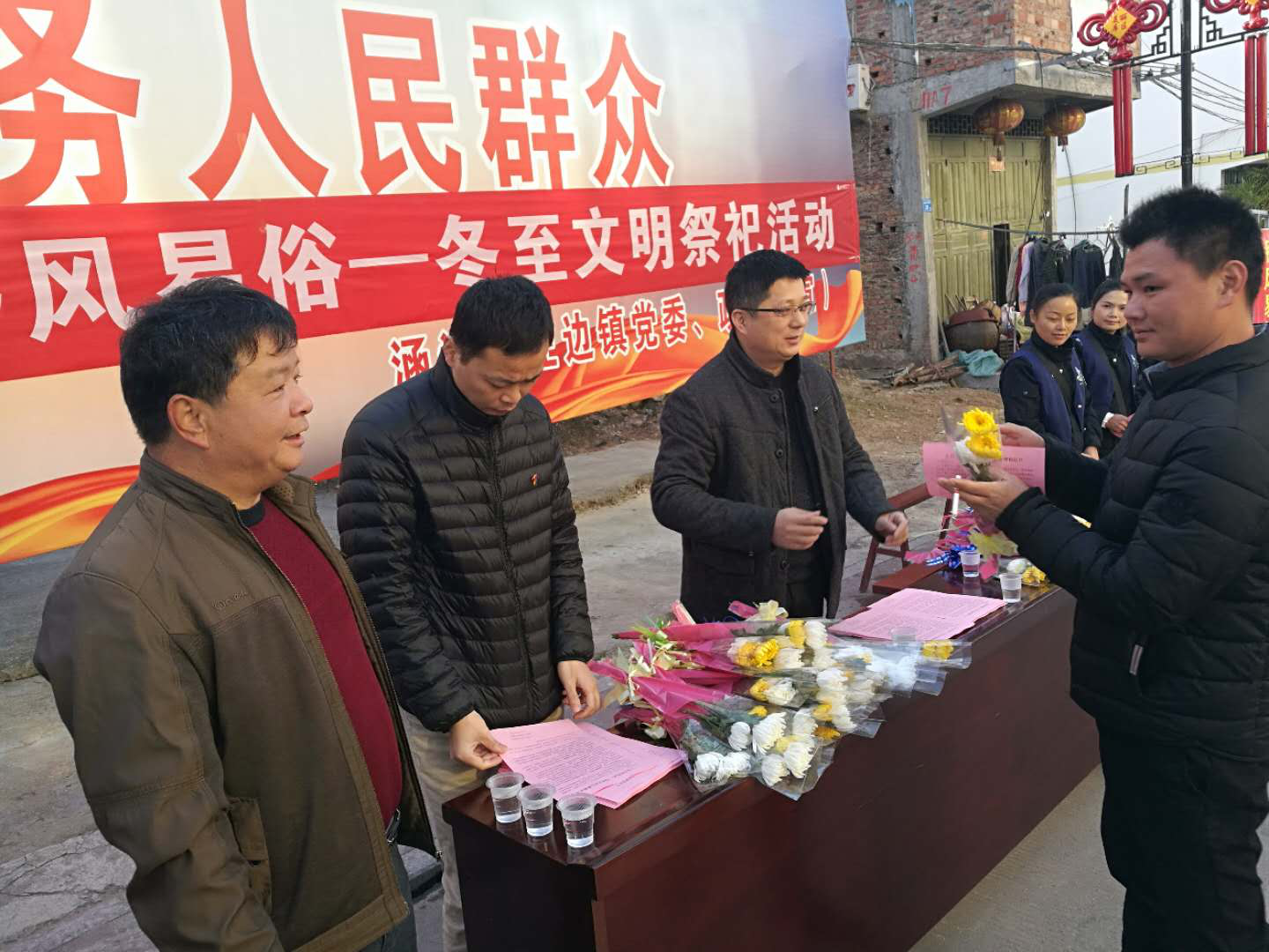 12月22日,正值农历冬至。庄边镇抓住广大庄边民众上山祭扫祖先的有利时机,结合今冬明春的冬季防火工作要求,以黄龙村为主场举办了移风易俗——冬至文明祭祀活动。活动过程中,工作人员为每一位路过的群众发放移风易俗倡议书,并为前往祭扫的群众发放鲜花,劝导其用鲜花替代炮烛进行文明祭祀。