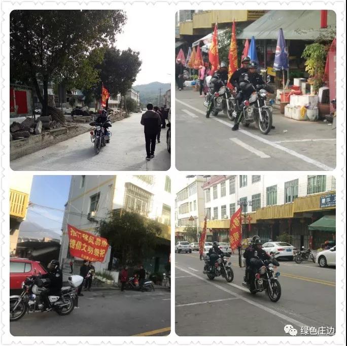 各村联防队在巡逻车上加装宣传红旗,在保障群众人身财产安全的同时将移风易俗的理念宣传至全镇各个角落。