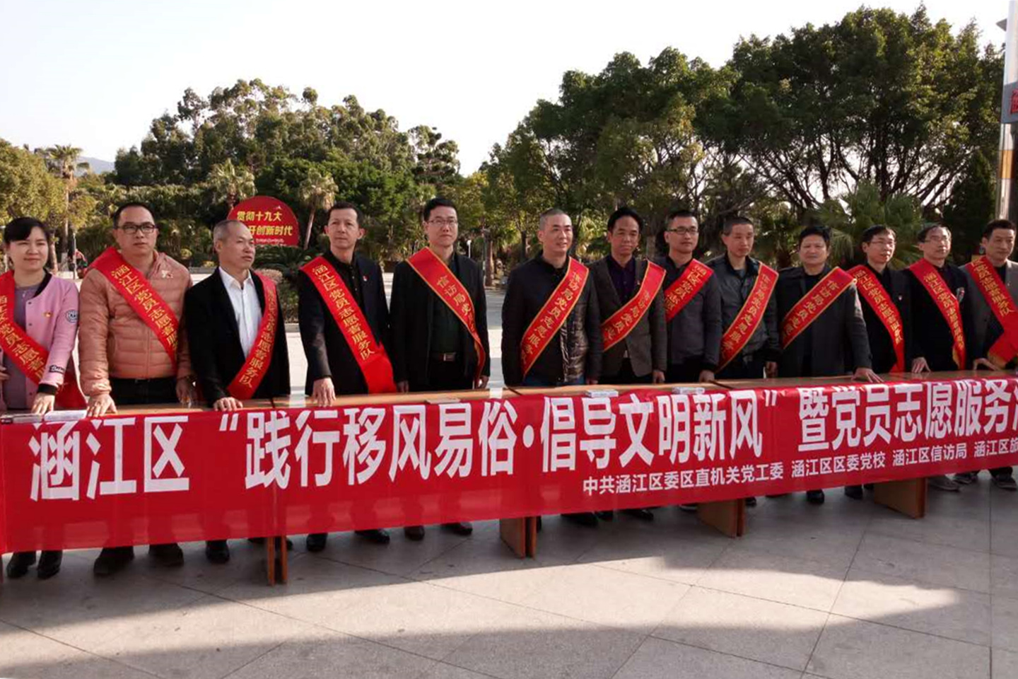 为深入贯彻落实党的十九大精神,推进移风易俗工作,近日,涵江区“践行移风易俗 倡导文明新风”暨党员志愿服务活动在涵江人民公园举办。活动由中共涵江区委区直机关党工委、区委党校、区信访局、区旅游局主办。