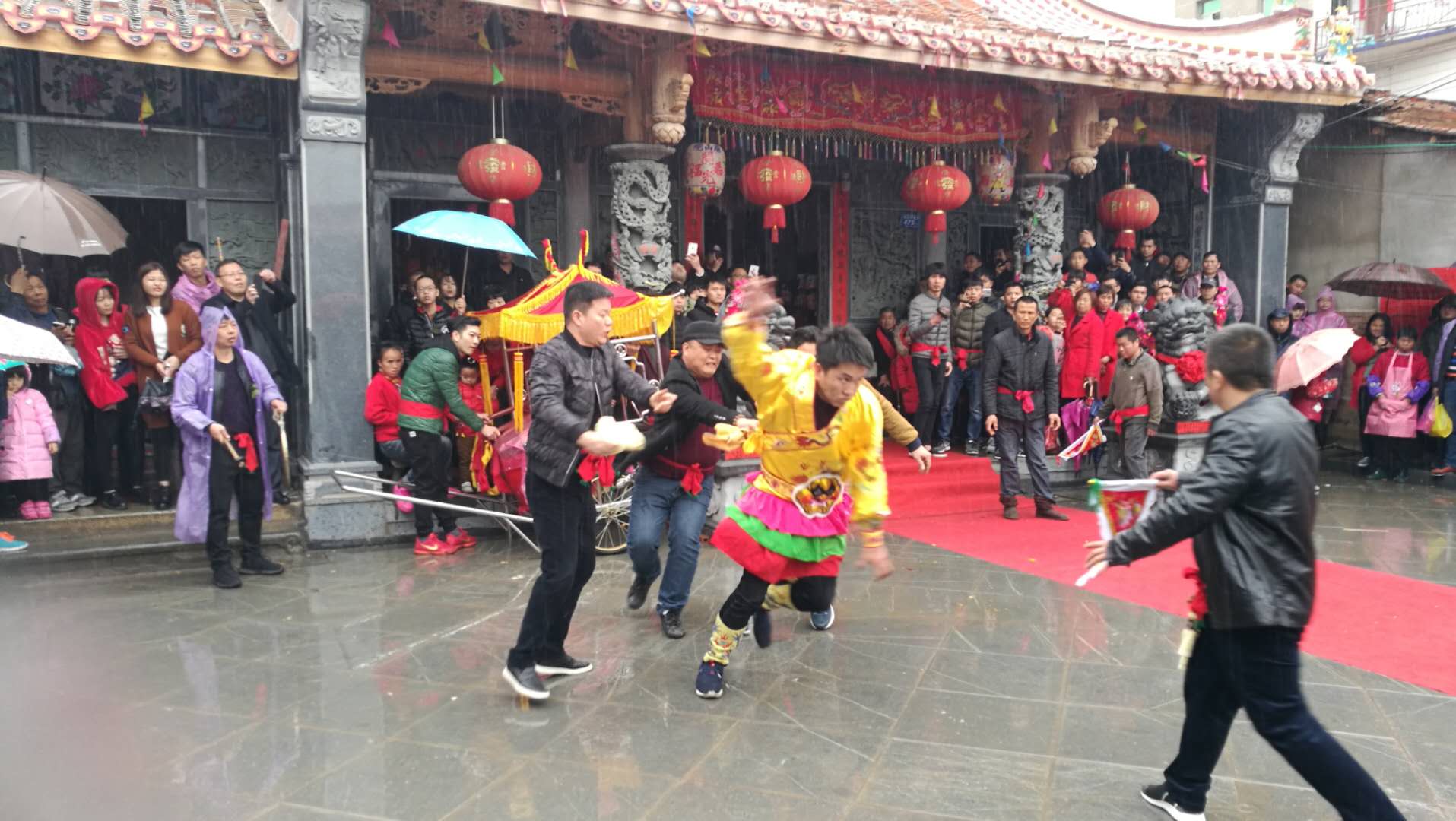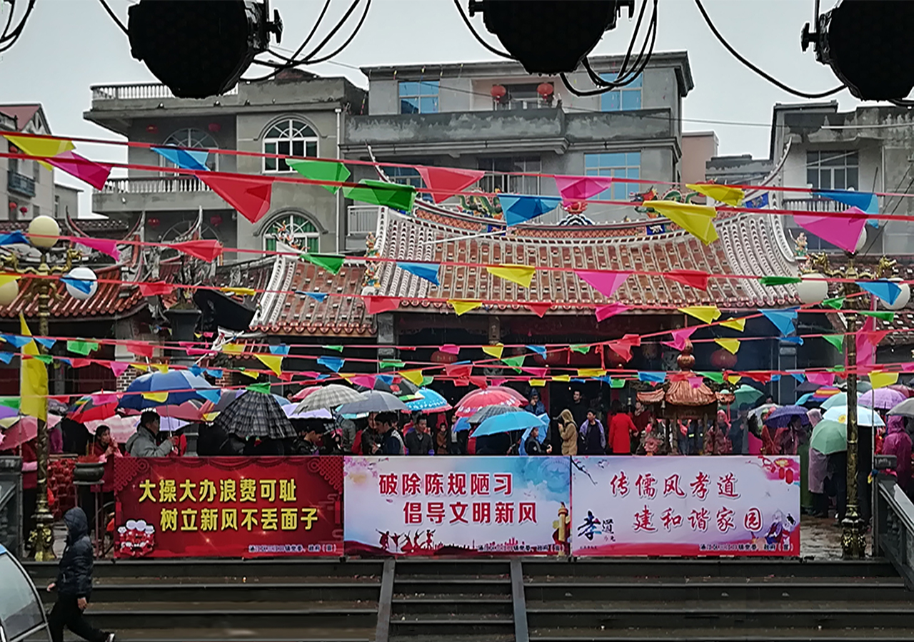 巡游踩街中,村内组织车鼓队、村两委、红白理事会成员、志愿者队伍组成踩街宣传队伍。在阵阵锣鼓声中,踩街成员冒着蒙蒙细雨,举着“破除陈规陋矩 倡导文明新风”、“大操大办浪费可耻 树立新风不丢面子”、“传儒风孝道 建和谐家园”等宣传牌,给浓浓的元宵味中,添上了一丝清新之风。(肖建清)图片:由芳山村提供