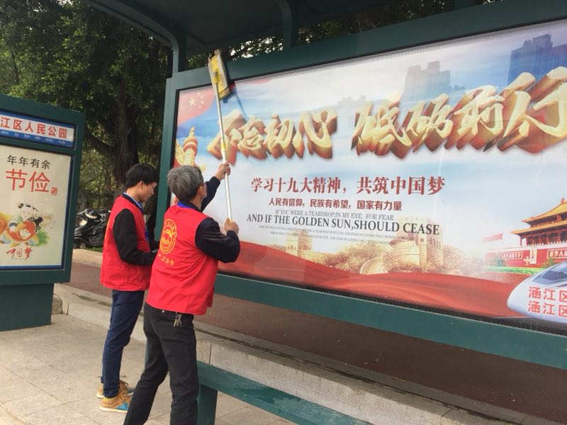 活动现场,志愿者们采用多小组多线路同时进行的方式,清洁公交停靠亭、站牌,清除公交站点野广告及周边垃圾。在劳动中,他们分工协作,认真仔细地清理每一块地方。有的小广告粘得非常结实,他们就用小扁铲一点点清理,直到清理干净为止。