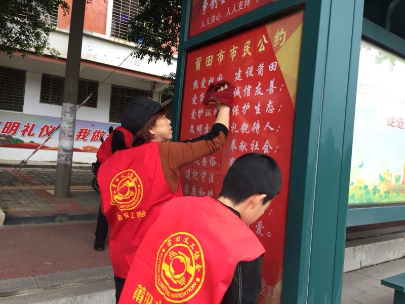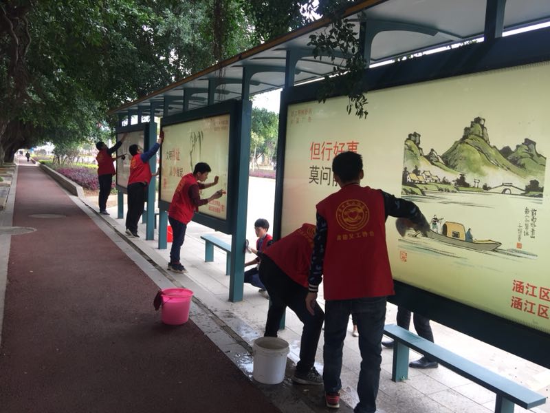 为了弘扬雷锋精神,努力营造文明和谐的社会风尚,3月17日,莆田义工协会•涵江义工服务队组织十几名志愿者,在涵江城区各个公交车停靠站,开展“学习雷锋 美化有我”清洁公交停靠站志愿服务活动。