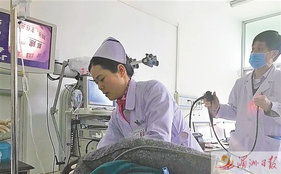 与此同时,陈美金所在的内镜室对医疗技术研究也一直在进行,每年至少确立一个研究课题,定期开展内部学习交流。如今,该科室早已名扬八方,周边各地病患慕名而来。去年一年,科室完成胃、肠镜近2万例,无痛内镜8000多例,各项内镜下治疗2000多例,抢救了大量消化道大出血内镜下止血病人。