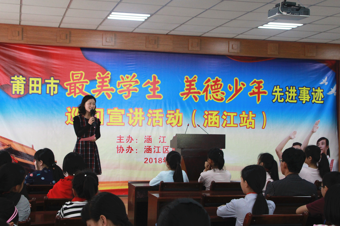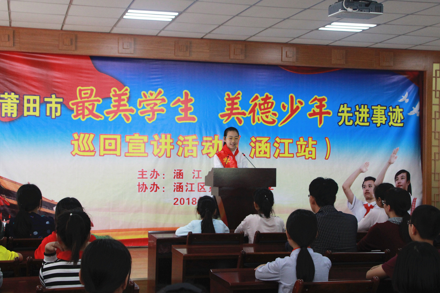 4月11日,莆田市“美德少年”先进事迹巡回宣讲活动在涵江区第二实验小学举行,学校领导和学生们一同聆听了“美德少年”的先进事迹。