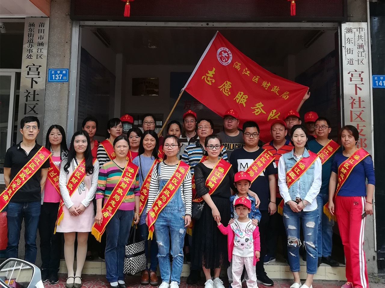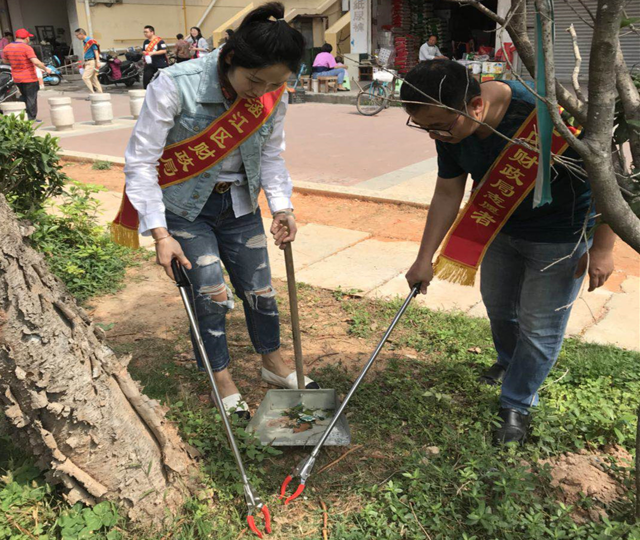 近日,涵江区财政局在涵东街道宫下社区开展环保志愿服务活动,义务捡拾垃圾、打扫街道、清理楼道野广告,积极践行绿色发展理念,助推生态文明建设。