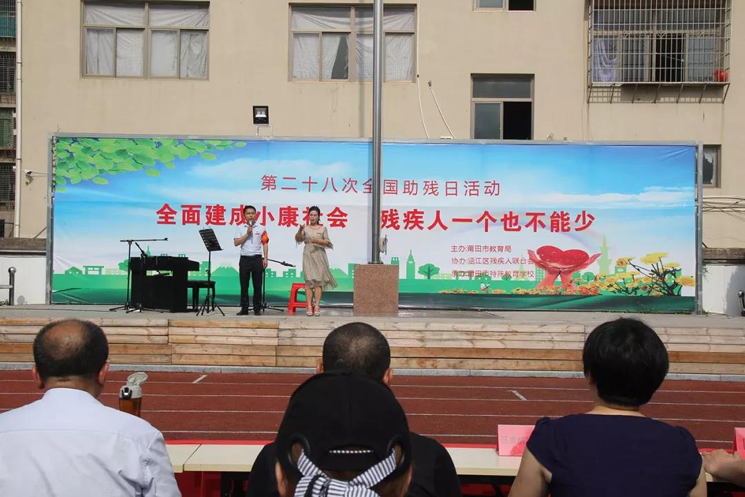 今年的5月20日是全国第二十八个助残日,为激发全社会扶残助残热情,塑造文明和谐友爱氛围,5月18日上午,涵江区残疾人联合会牵头,联合十一家单位在涵江区莆田市特殊教育学校举办主题为“全面建成小康社会,残疾人一个也不能少”助残日活动。