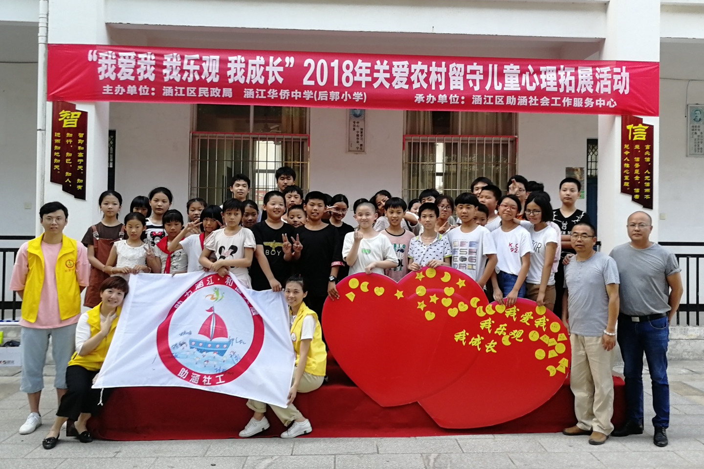 5月22日下午,由涵江区民政局主办、涵江区助涵社会工作服务中心承办的主题为“我爱我、我乐观、我成长”农村留守儿童心理拓展活动在涵江区农村留守儿童关爱基地——涵江华侨中学顺利开展,这也是该校第二届“525”心理健康节活动的一个重头戏。
