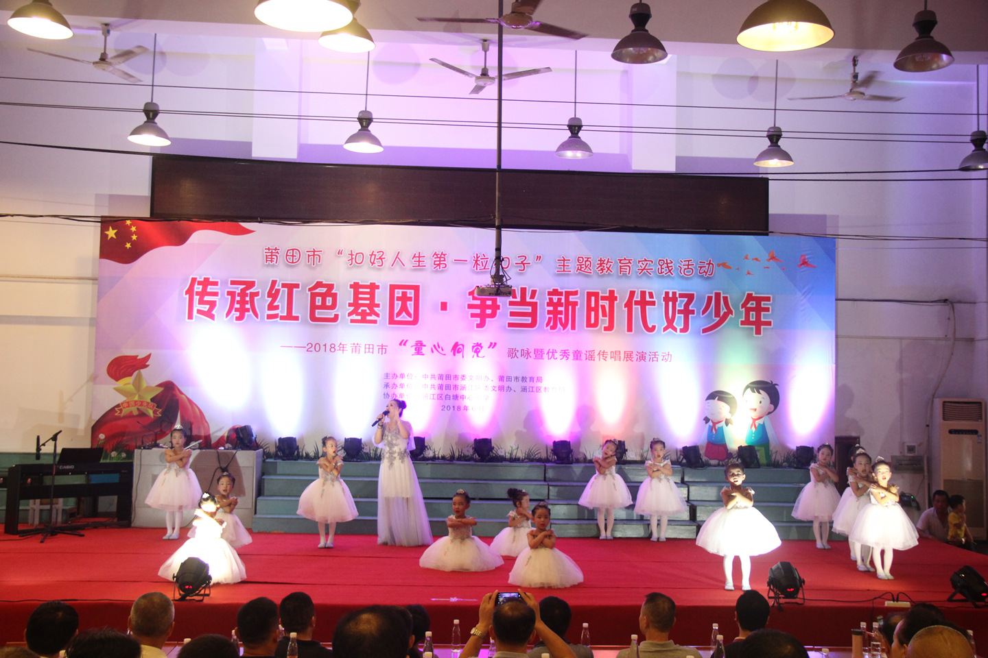 “中国人,中国梦,梦里存着真善美……”6月20日下午,“传承红色基因·争当新时代好少年”2018年莆田市“童心向党”歌咏暨优秀童谣传唱展演活动在涵江区白塘中心小学举行。活动以唱响优秀歌曲和童谣,歌颂党、歌颂祖国、歌颂新时代。