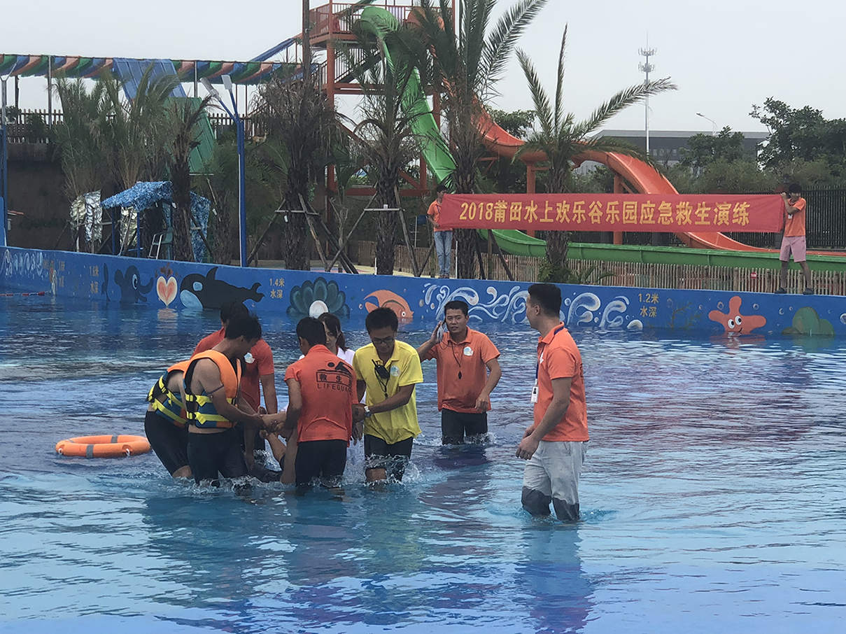 最后,水上乐园全体人员开展了现场安全紧急疏散演练。