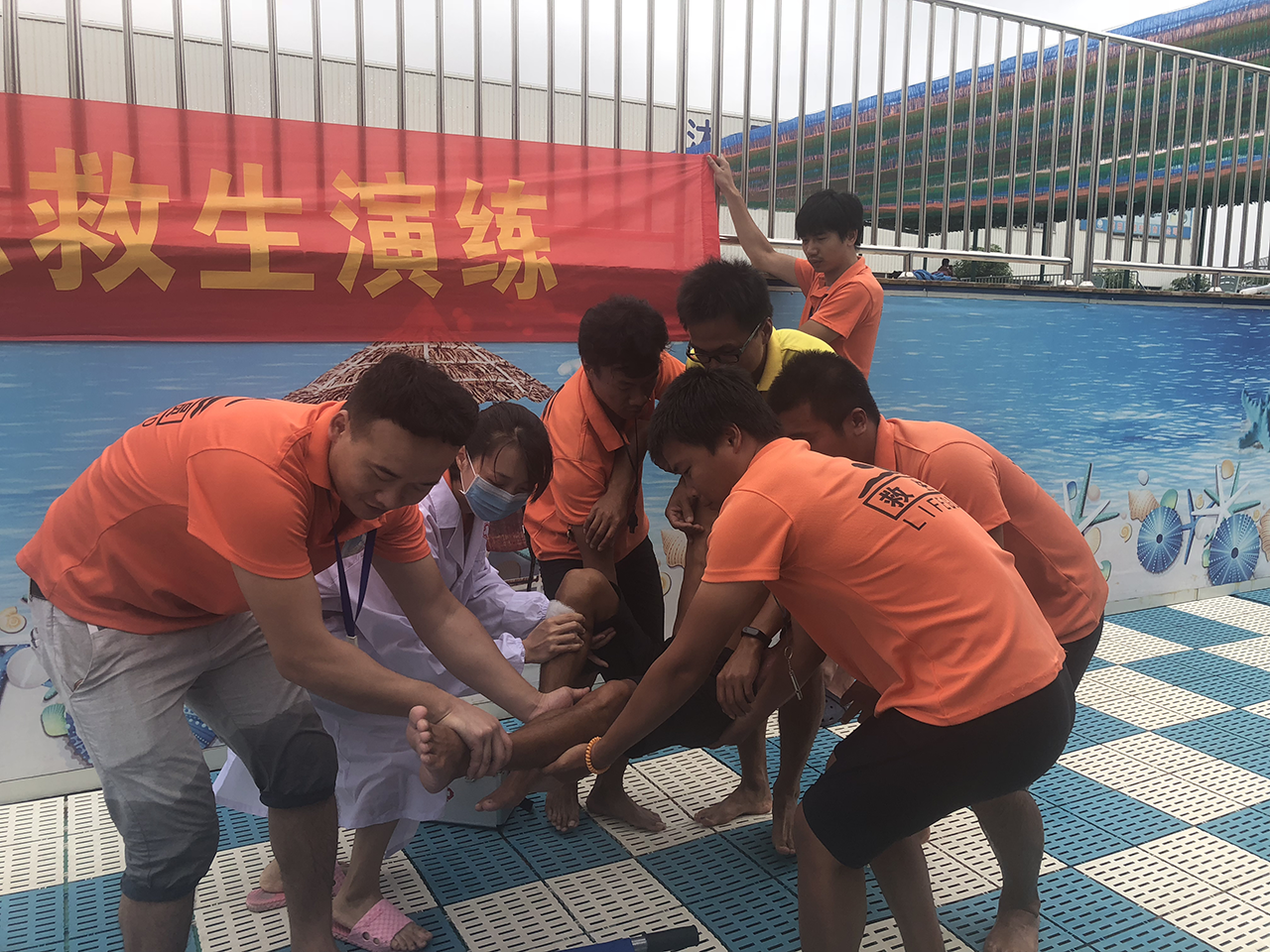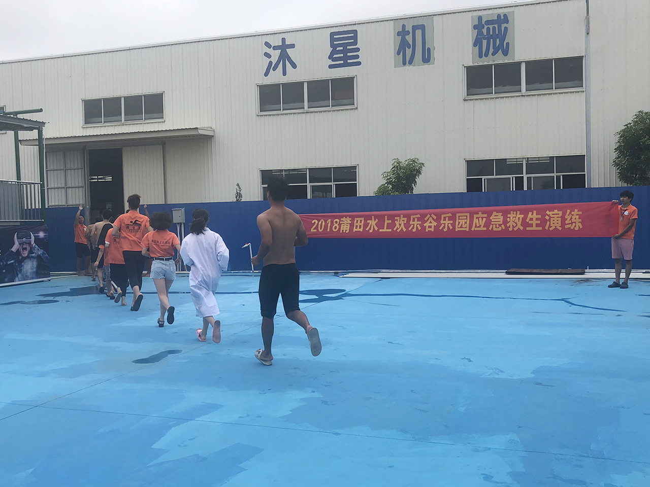 最后,水上乐园全体人员开展了现场安全紧急疏散演练。