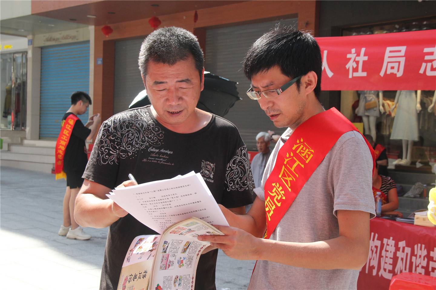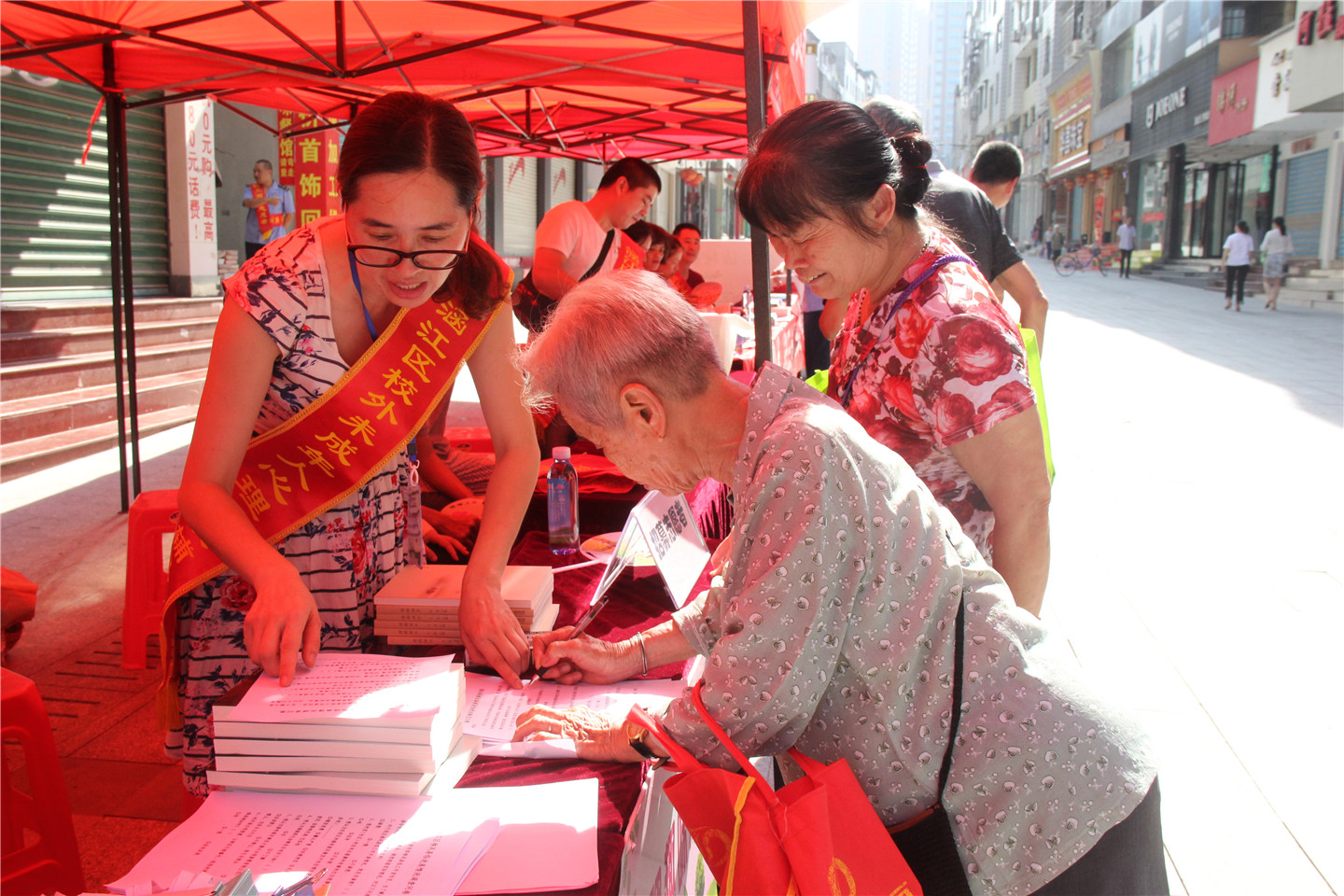 为大力弘扬志愿服务精神,发挥党员的先锋带头作用,为助力新莆田建设贡献一份力量,6月28日,涵江区委组织部、区委宣传部、区工商局、区人社局、涵江医院、区环卫处、区志愿者协会和禁毒大队等单位在顶铺步行街联合举办“助力新莆田 建功新时代”党员志愿服务活动。