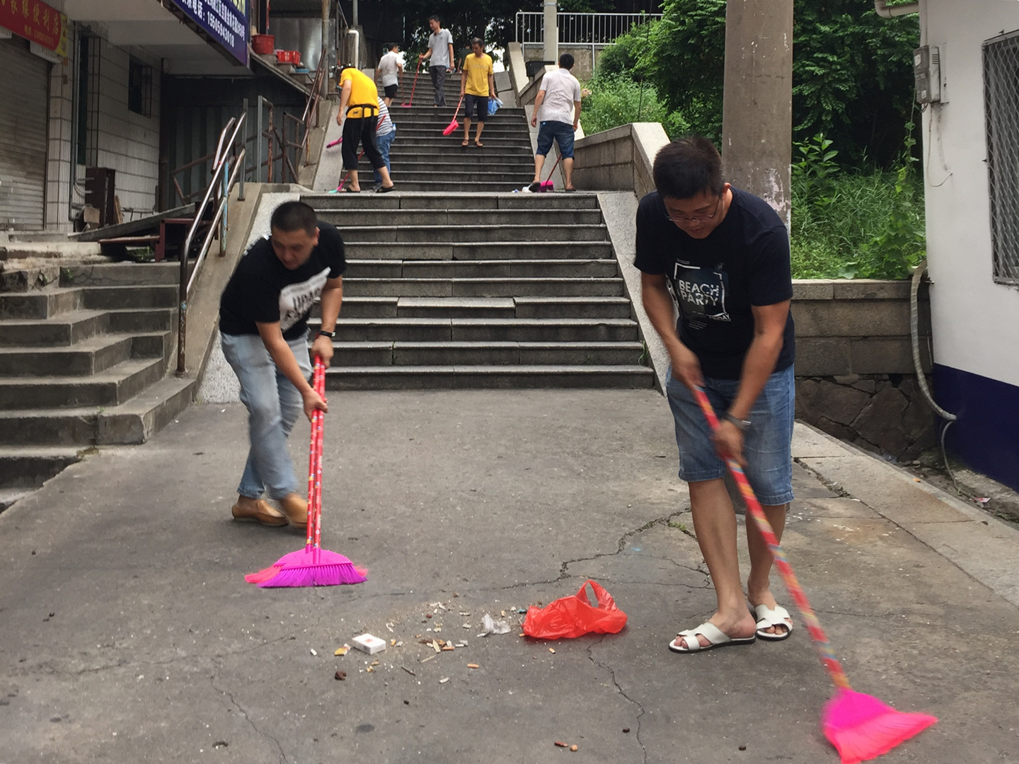 在新区社区,志愿者们充分发挥团结协作精神,在沿街绿化带以及店铺周边认真地捡拾碎纸屑、塑料袋、生活垃圾等。在清理垃圾的过程中,志愿者们不忘向社区居民宣传环保知识,号召居民积极主动投身到美化环境、清洁家园的活动中来。此外,志愿者们还为坚守在社区保洁工作一线的环卫工人送上矿泉水,环卫工人们纷纷点赞。