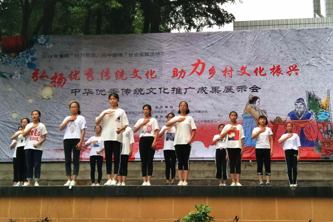 7月23日,共青团涵江区委联合闽江学院人文与传播学院、涵江区民政局在莆田市庄边中学举办了“弘扬优秀传统文化,助力乡村文化振兴”中华优秀传统文化推广成果展示会。本次演出以“移风易俗传文明,家风家训扬美德”为理念,将优秀的中华文化以能体现时代特征的新颖形式进行传播。