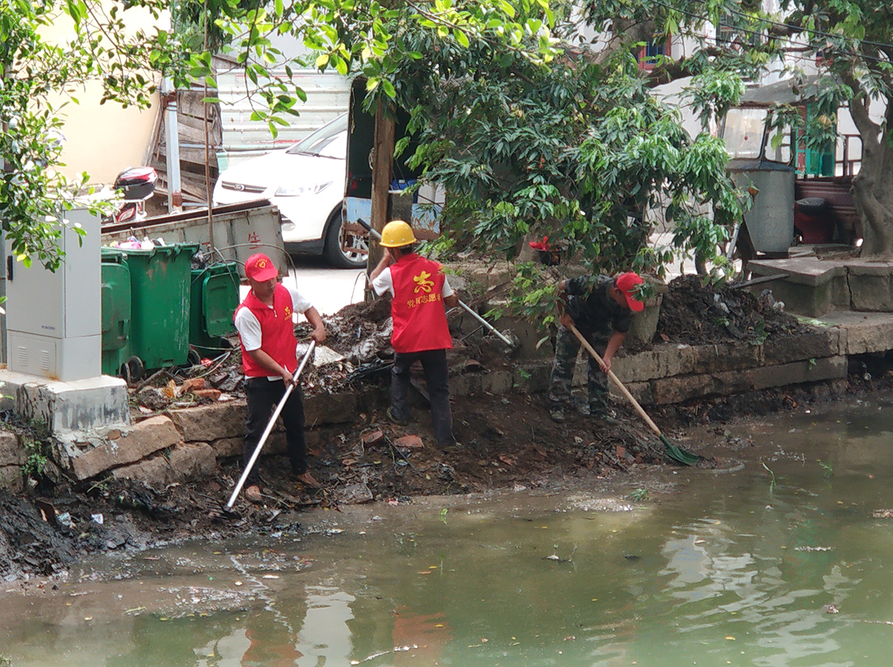 在曾经一派水乡商贾云集、人丁兴旺、物资往来流通生机勃勃的涵江萝苜田,水心河贯穿其中。然而,由于附近部分群众环保意识薄弱,一度导致河道两岸垃圾成堆、淤泥堆积,一湾河水成了“死水”。7月19日,涵西街道组织30多名街道干部、楼下社区干部,对水心河进行集中清淤清障。记者在现场看到,由于该片区古建筑密集、道路狭窄,只能以小型挖掘机为主力进行作业,“铁手臂”在河里上下摆动,一铲又一铲地倒在手扶拖拉机上,三四辆手扶拖拉机则来回把淤泥、垃圾运出去。7月21日,该街道再次组织延宁社区、楼下社区、青年社区的干部对水心河及岸边环境卫生进行治理,河面干净了、陈年垃圾不见了,周围群众纷纷叫好。