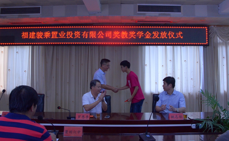 8月3日上午,福建骏乘置业投资有限公司奖教奖学金发放仪式在莆田六中会议室里隆重举行。区委常委、宣传部长罗恩李出席颁奖仪式。