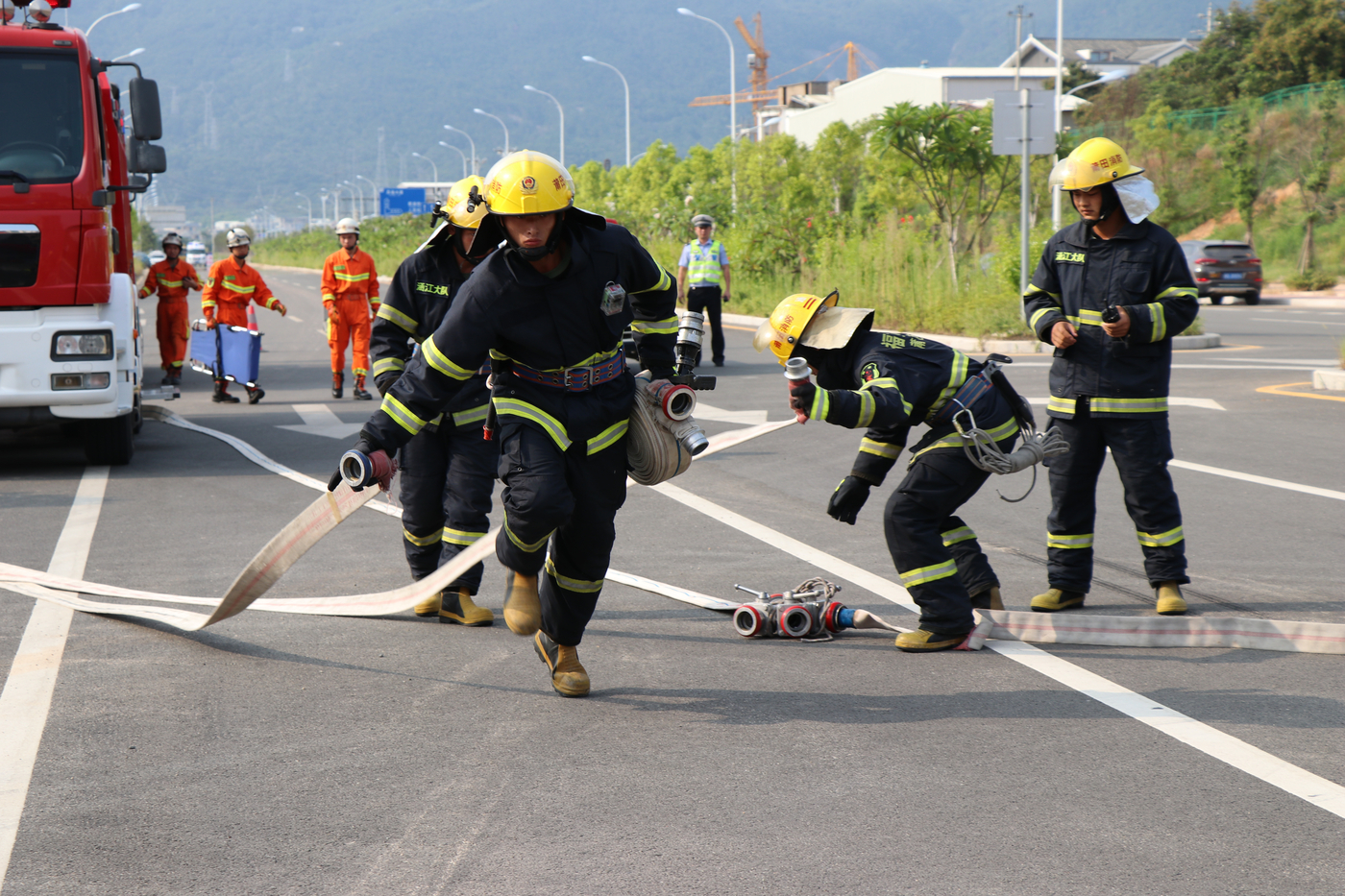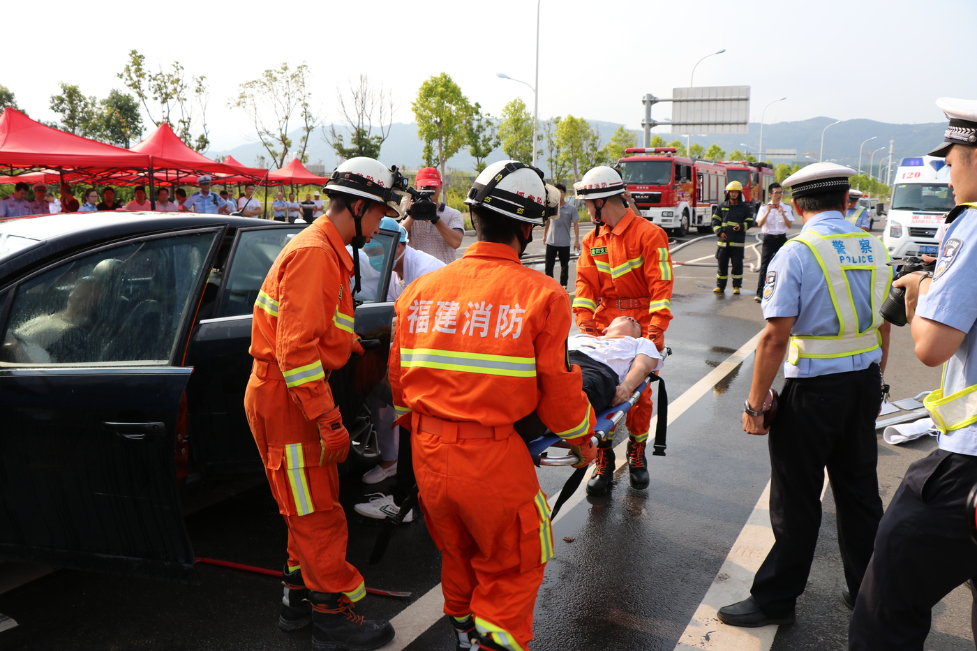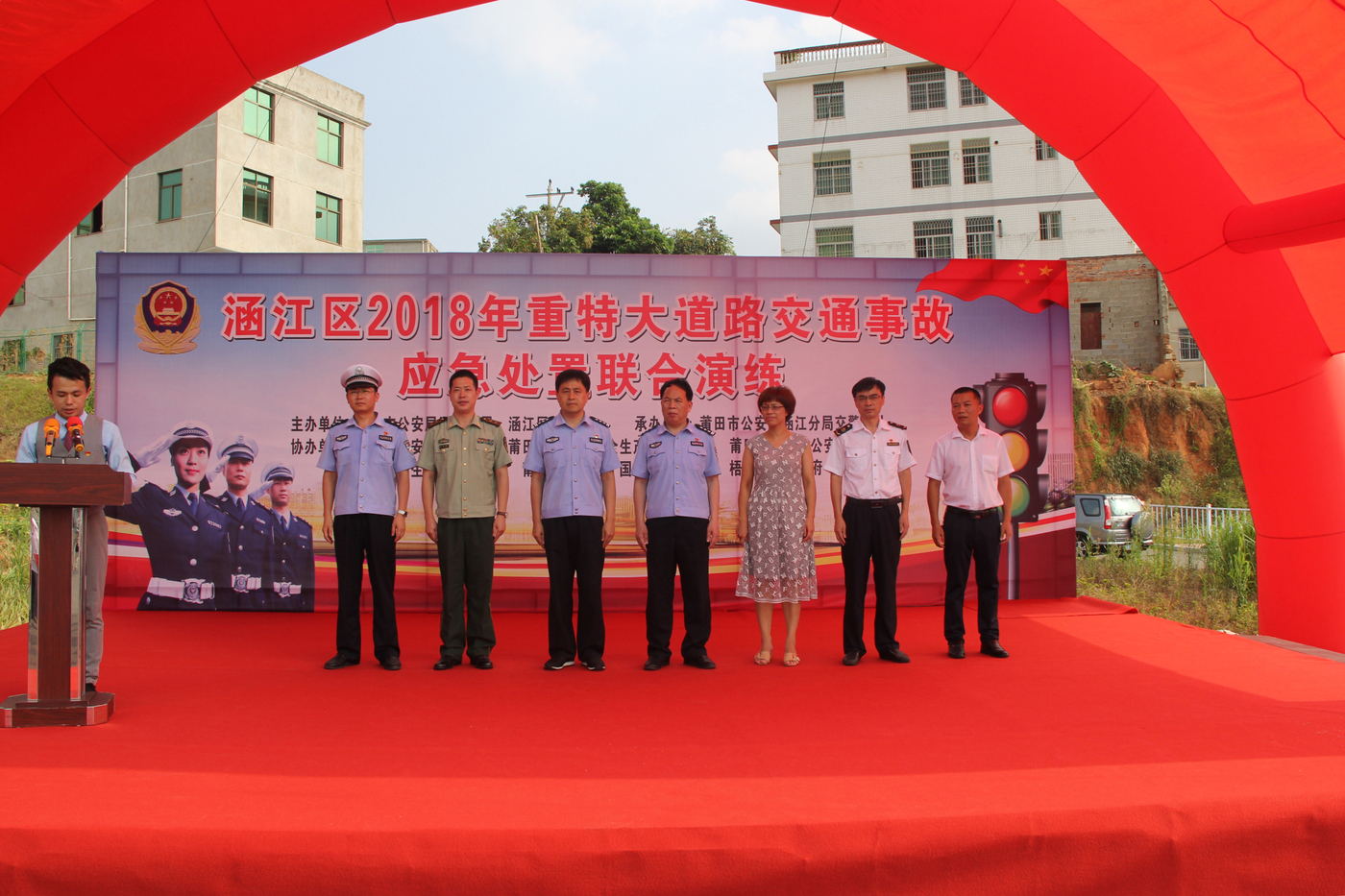 为进一步推进安全生产“严排查、严整治、严监管”活动,日前,涵江公安分局联合区道安办、消防、医疗、安监、卫计等部门开展重特大道路交通事故应急处置联合演练。市公安局党委委员、交警支队支队长李洪忠,涵江区副区长、公安局长方永武以及区相关部门领导到场观摩指导。