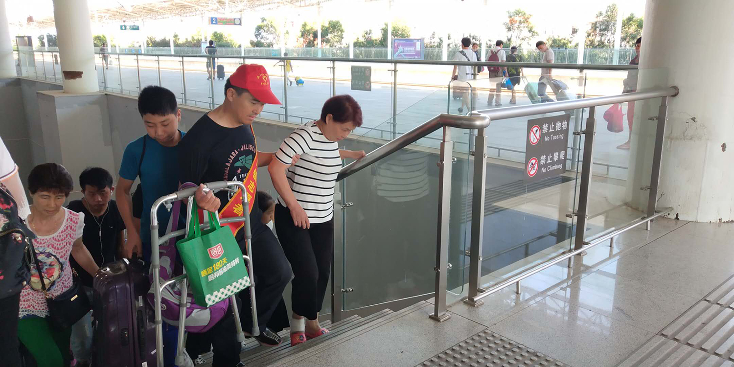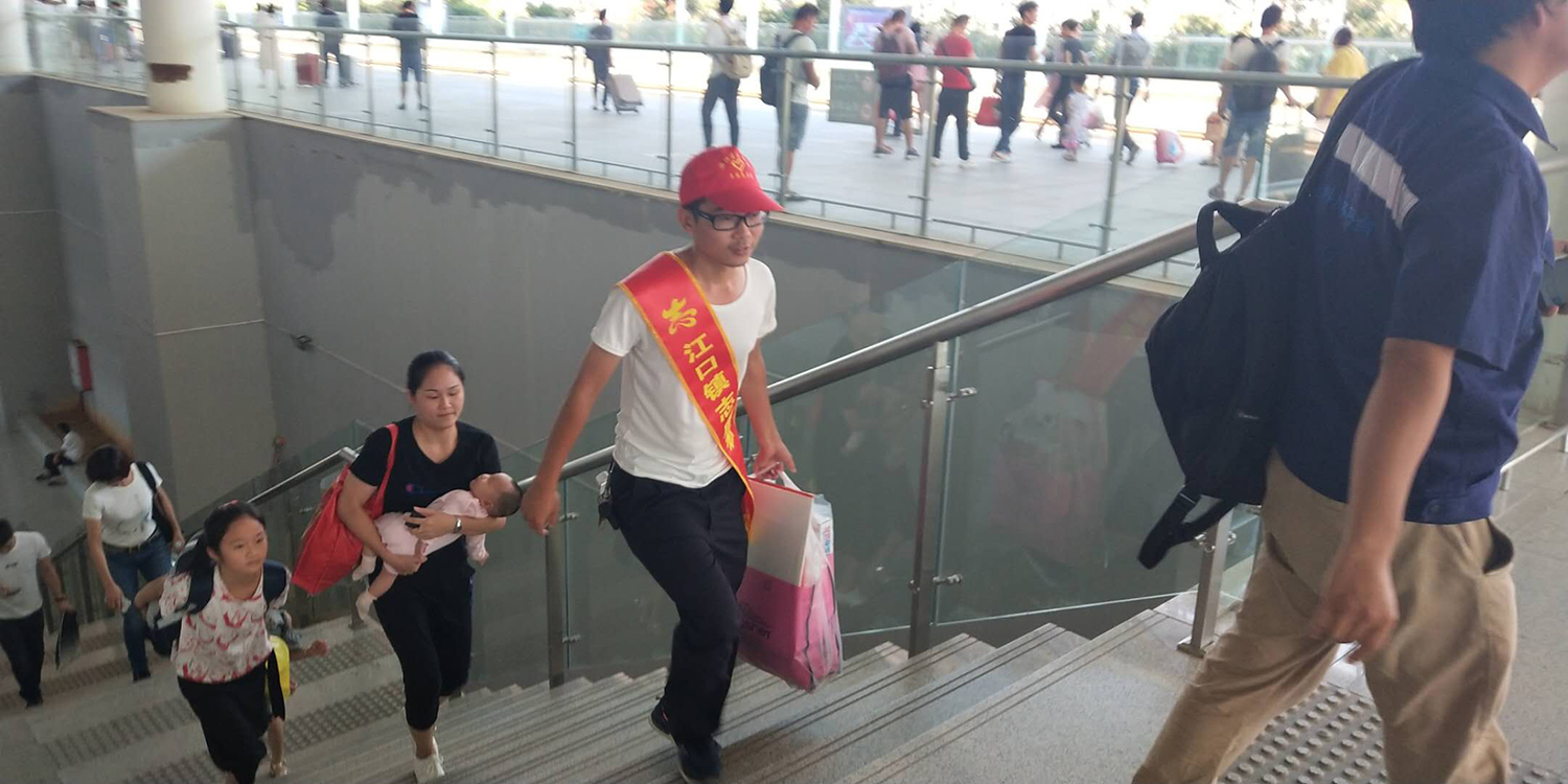 正值暑期出行高峰,涵江动车站进出的旅客络绎不绝。涵江的青年志愿者们自发组建了一支服务队,为南来北往的旅客提供优质的服务。