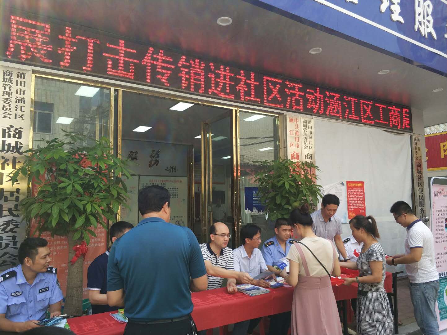 近日,涵江区工商局走进商城社区,开展“打击传销进社区”宣传活动,把“防传”、“打传”知识送到群众的家门口,提升群众识别、防范传销的能力。