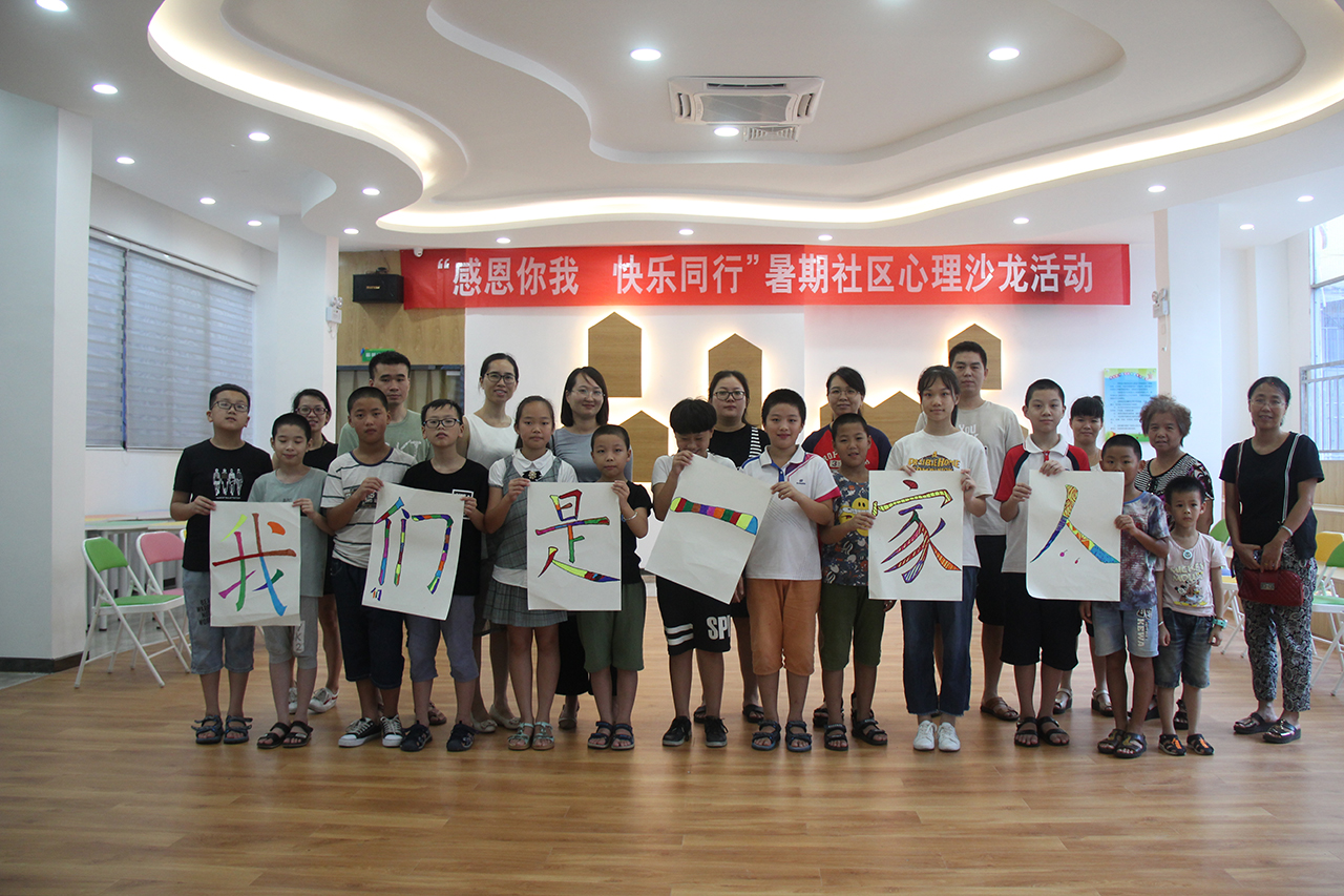 最后大家一起创作了“我们是一家人”六个大字,在和谐愉快的氛围中结束了本次心理沙龙活动。