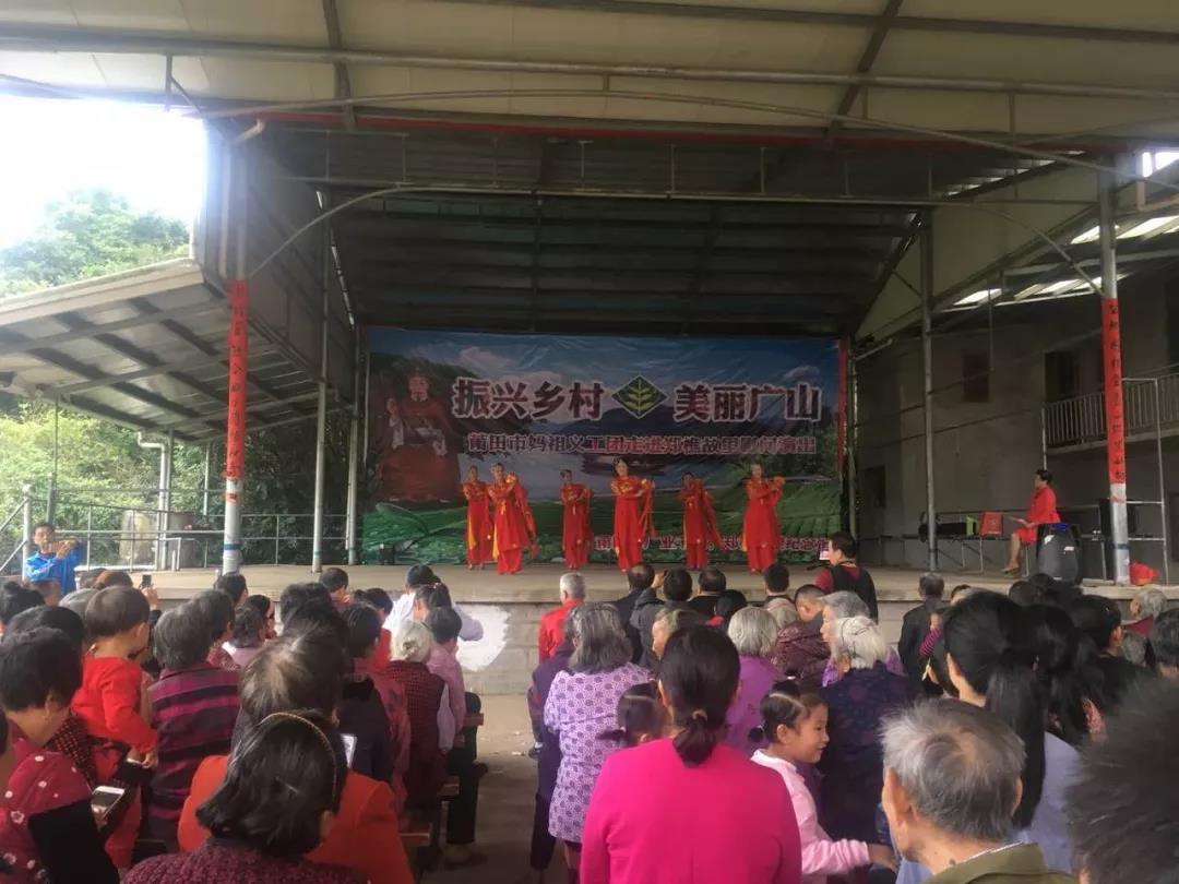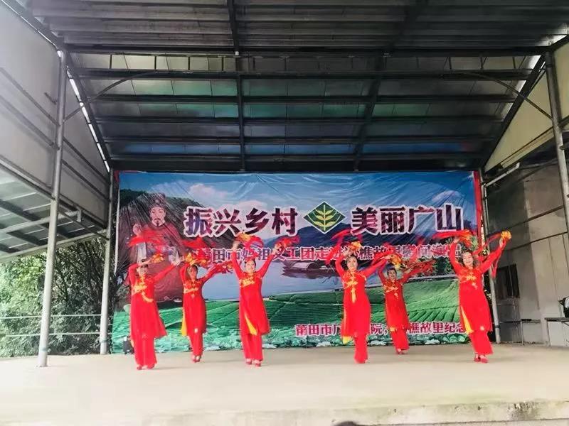 此次演出以“振兴乡村,美丽广山”为主题。活动伊始,由义演组织者陈金伟上台致辞、妈祖义工团董事长林瑞娟代表捐款,引得群众阵阵感谢的掌声;随后,义工团的书画家们现场挥毫泼墨,萨克斯演奏、太极表演、民俗舞蹈等特色节目依次上演,一幅幅精美绝伦的书画作品、一首首慷慨激昂的歌曲、一支支轻盈优美的舞蹈,一次又一次博得了现场观众的阵阵掌声和声声喝彩。