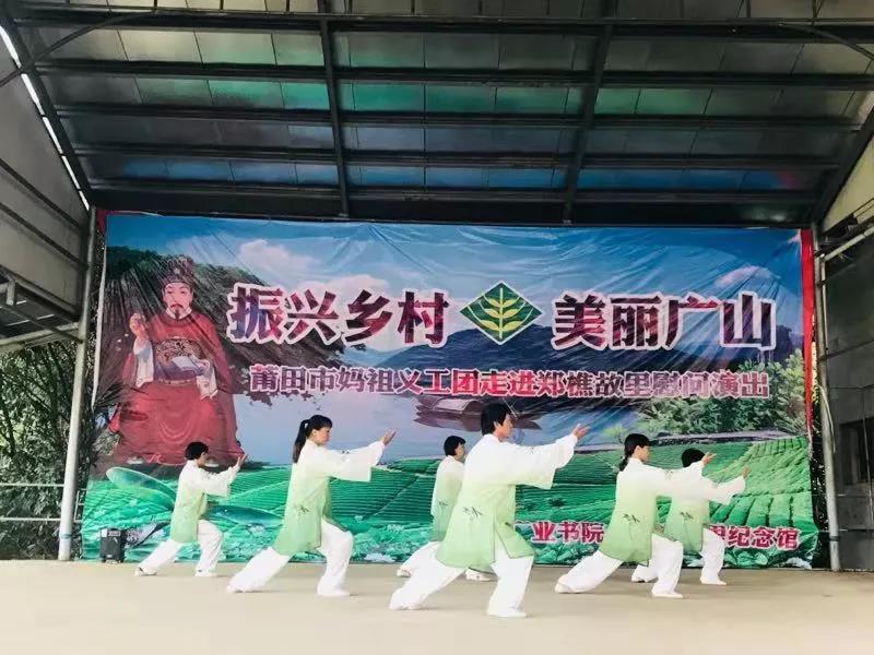 为繁荣群众文化,10月14日,莆田市妈祖义工团走进广业书院——郑樵故里纪念馆,为白沙镇广山村村民带来了一场精彩纷呈、别开生面的文艺汇演,将正能量、好声音通过大家喜闻乐见的形式送到基层。此次活动对促进山区农村文化建设,改善农村社会风气,满足广大农民群众精神文化生活有积极作用。