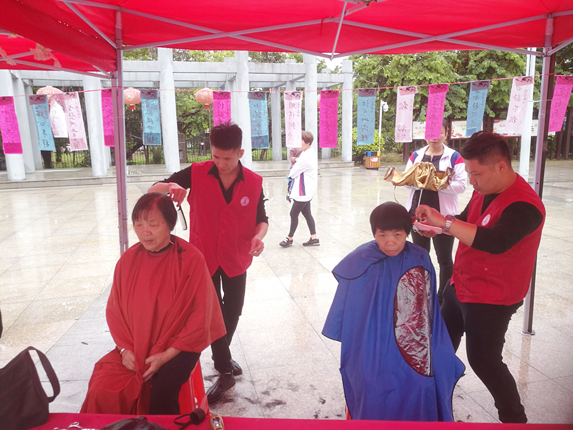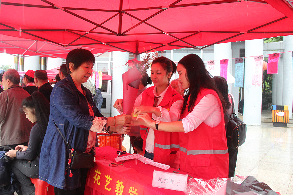 为增强老年人的健康生活意识,文艺演出过后还举办了“夕阳情”环湖健步行活动和广场志愿服务活动。现场虽然下起蒙蒙细雨,但丝毫不减老人朋友们过节的热情。环湖行的老年朋友们在起点处整装待发,一声“出发”的口令,大家行动有序、矫健有力,整齐的装容给公园湖岸增添了一道亮丽的景色。同时,广场上的活动同样丰富多彩,有花艺教学、义诊义剪、现场剪纸、游园及猜灯谜等活动,吸引了一批又一批老年朋友和周边居民一同参与,感受着重阳浓浓的节日氛围。