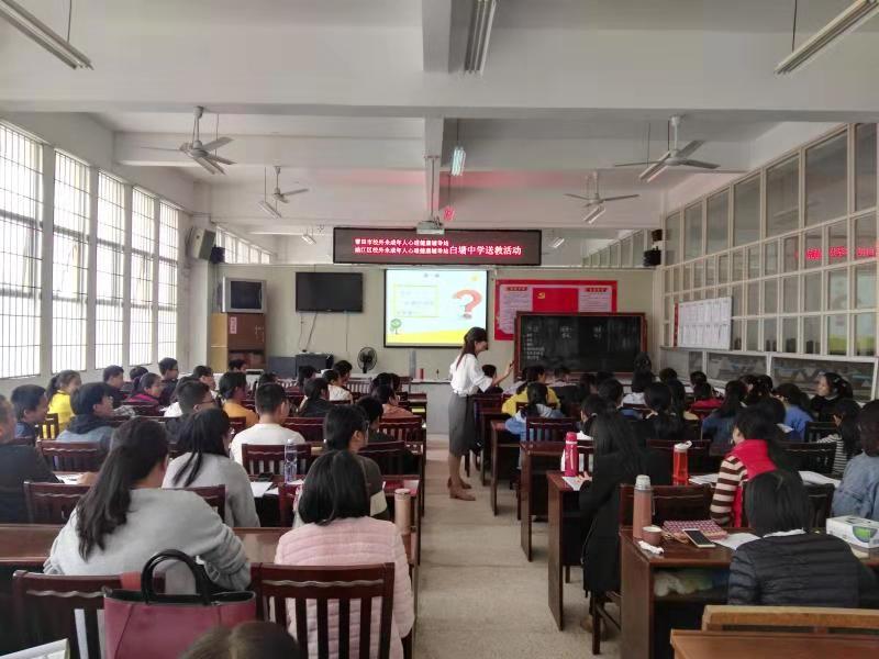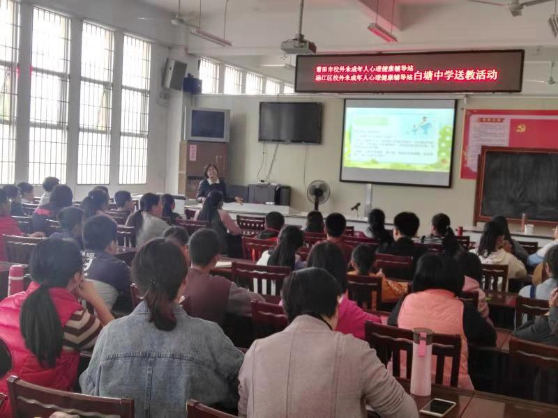 为促进校园精神文明建设,促进未成年人心理健康发展,11月20日上午,莆田市、涵江区两级校外未成年人心理健康辅导站在白塘中学举行送教下乡活动。