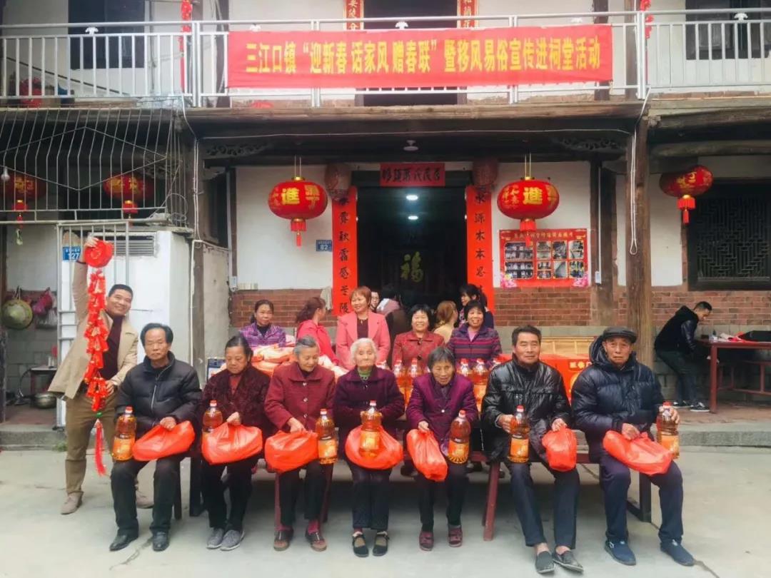 为进一步弘扬中华民族优秀传统文化,推动社会主义核心价值观融入百姓生活,1月26日,在新春佳节来临之际,三江口镇在前明村萧氏宗祠开展“重温一次家训,传承一份孝道,签订一个承诺,书写一对春联,赠送一串电子炮”移风易俗宣传进祠堂活动。