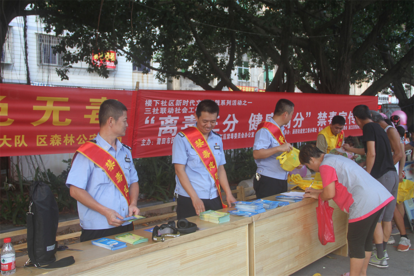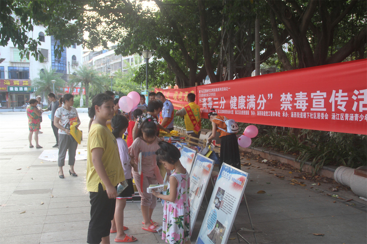 近日,涵江区禁毒办、公安分局禁毒大队、区民政局、区自然资源局、涵西街道党工委办事处、涵西街道楼下社区居委会、区青涵青少年社工服务中心等单位联合在涵西街道啤酒广场举办“离毒三分,健康满分”的禁毒宣传活动。