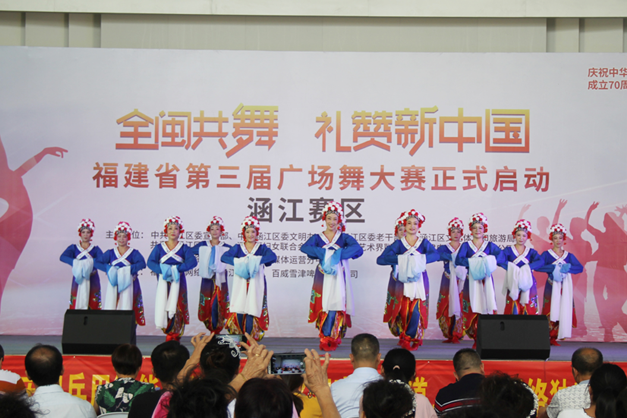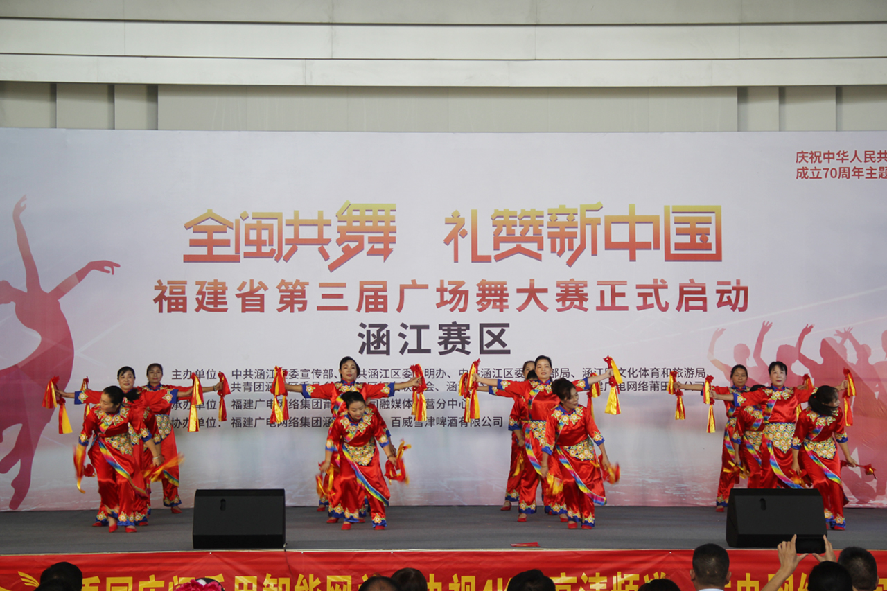 9月20日上午,福建省第三届“全闽共舞 礼赞新中国”广场舞大赛涵江赛区选拔赛在雪津体育馆内隆重举行,共有来自全区各乡镇(街道)的17支队伍分为中老年组和青少儿组参加了比赛。