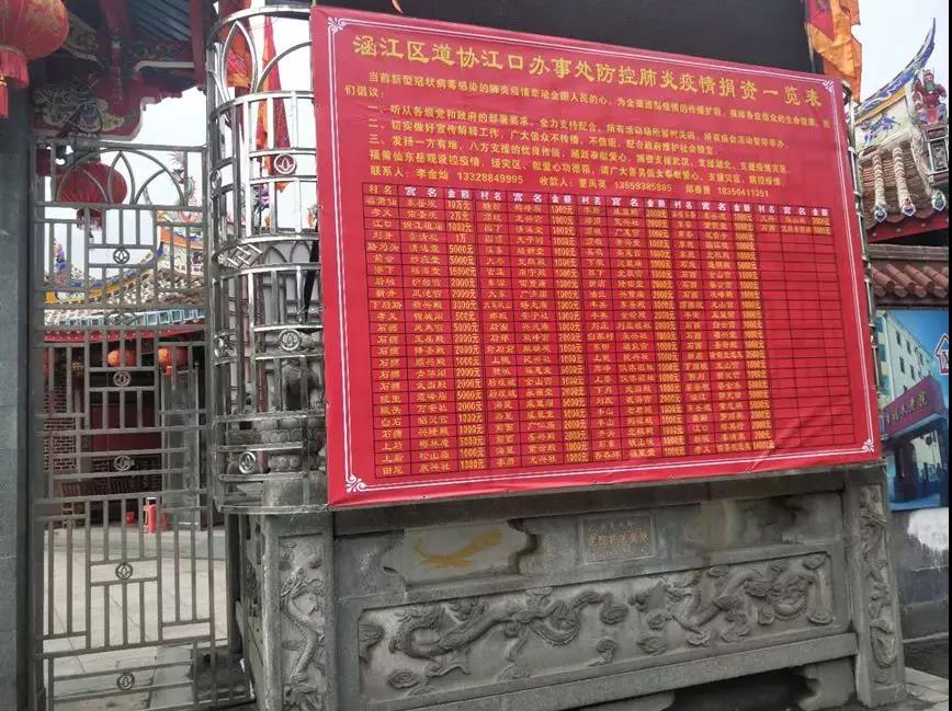 为帮助解决防疫物资匮乏问题,涵江道协江口办事处、福莆仙东岳观及时向全镇各宫观发出支援武汉、支援灾区、支援防控疫情的倡议,利用江口镇海外华侨众多的有利条件,动员海外乡亲购买口罩、防护服等紧缺的防控物资寄回国内。二十多天来,江口镇各宫庙和海内外信众踊跃捐款捐物,慰问抗击疫情第一线工作人员,奉献爱心。据不完全统计,截至2月15日,共收到各类捐款和物资折合人民币100多万元,支持家乡防控疫情工作。(区委统战部供稿)