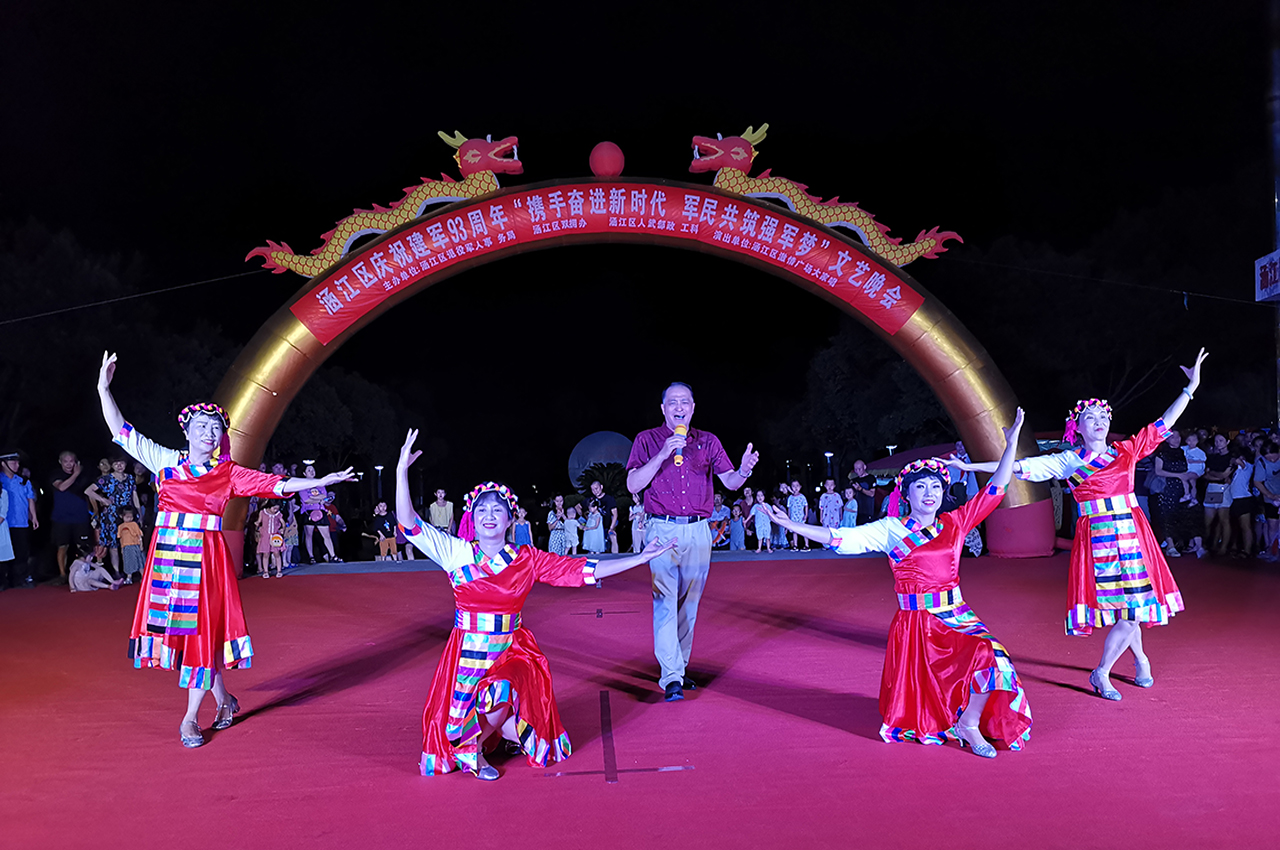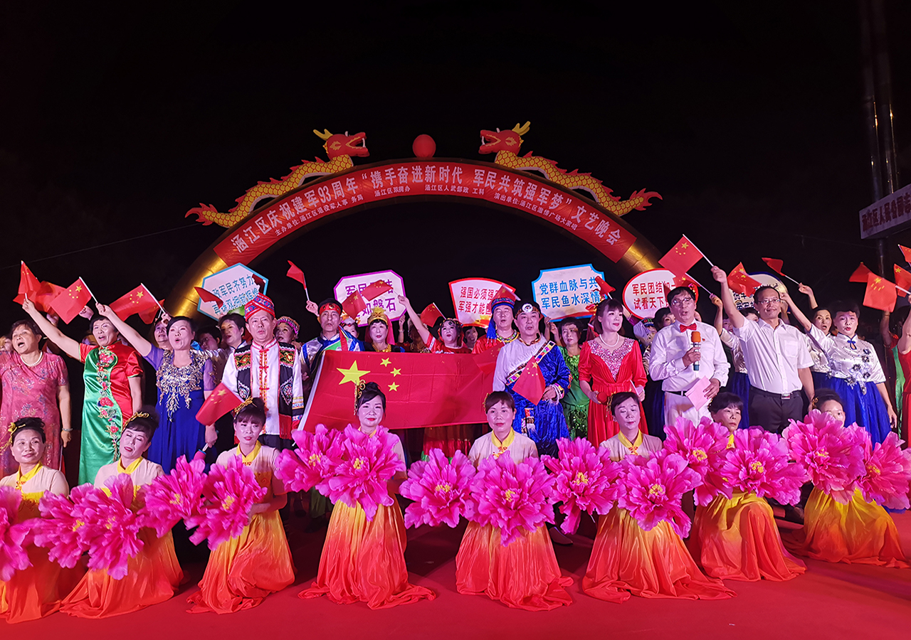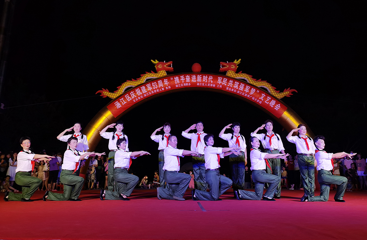 为庆祝建军93周年,8月1日晚,由涵江区退役军人事务局、涵江区双拥办、区人武部主办的“携手奋进新时代 军民共筑强军梦”涵江区庆祝建军93周年文艺晚会在涵江人民公园精彩上演。区委常委、人武部政委黄陈业,人武部副部长李虎,区退役军人事务局局长、双拥办主任高智英及部分驻涵部队官兵代表和数百名群众一起观看了本次晚会。
