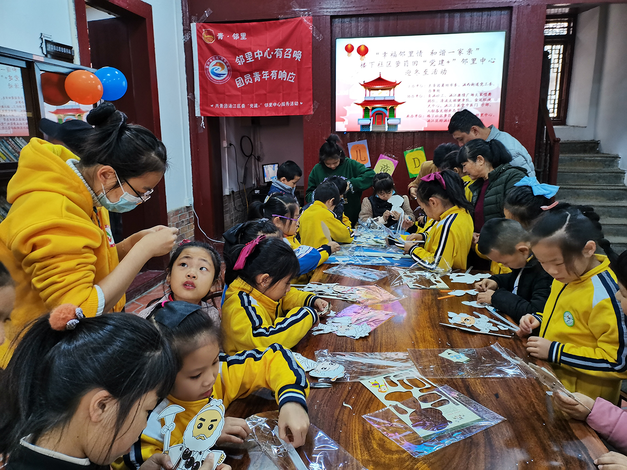 品尝甜甜的汤圆、制作皮影道具、玩垃圾分类小游戏、学习法律法规知识……12月19日,涵西楼下萝苜田“党建+”社区邻里中心里热闹非凡。助涵社工和青年志愿者们陪着社区居民和孩子一起过冬至,一系列精彩纷呈的节目让邻里中心成了一片欢乐的海洋。这场主题为“幸福邻里情 和谐一家亲”的活动,是涵江团区委倾力推进“青·邻里”“党建+”社区邻里中心建设的一个缩影。