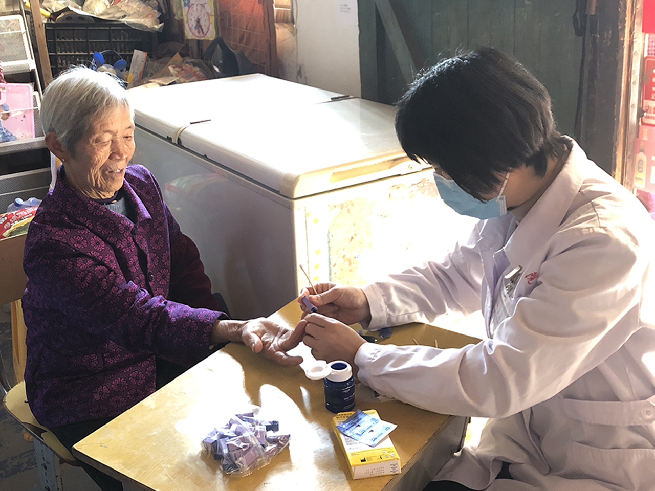 活动中,医护志愿者在村干部的带领下,入户为村民测血糖、量血压,仔细询问饮食、生活起居和身体状况,以及就常见病、慢性病做了初步筛查、诊断和治疗,并结合各自身体状况制定合理的健康指导方案,向他们分发健康保健知识宣传册,耐心地叮嘱各种日常注意事项。