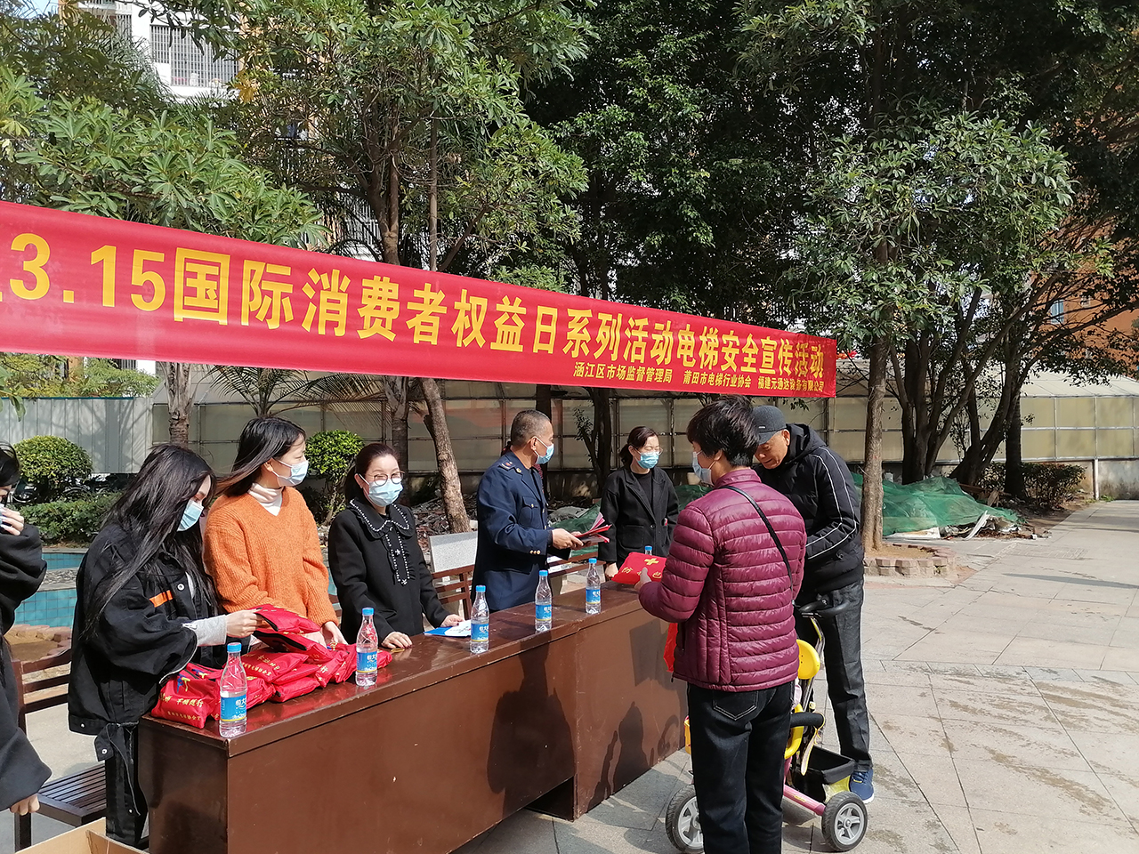 涵江区市场监管局联合市电梯行业协会和相关企业组织的志愿者服务队走进隆恒财富广场,开展“3·15”消费维权和电梯安全宣传活动。活动中,志愿者们现场搭起宣传台、接受消费者咨询,全方位、多角度地向辖区居民和商户宣传相关知识,共发放材料1200余份,接受咨询132人次,进一步提高广大市民的消费维权意识。